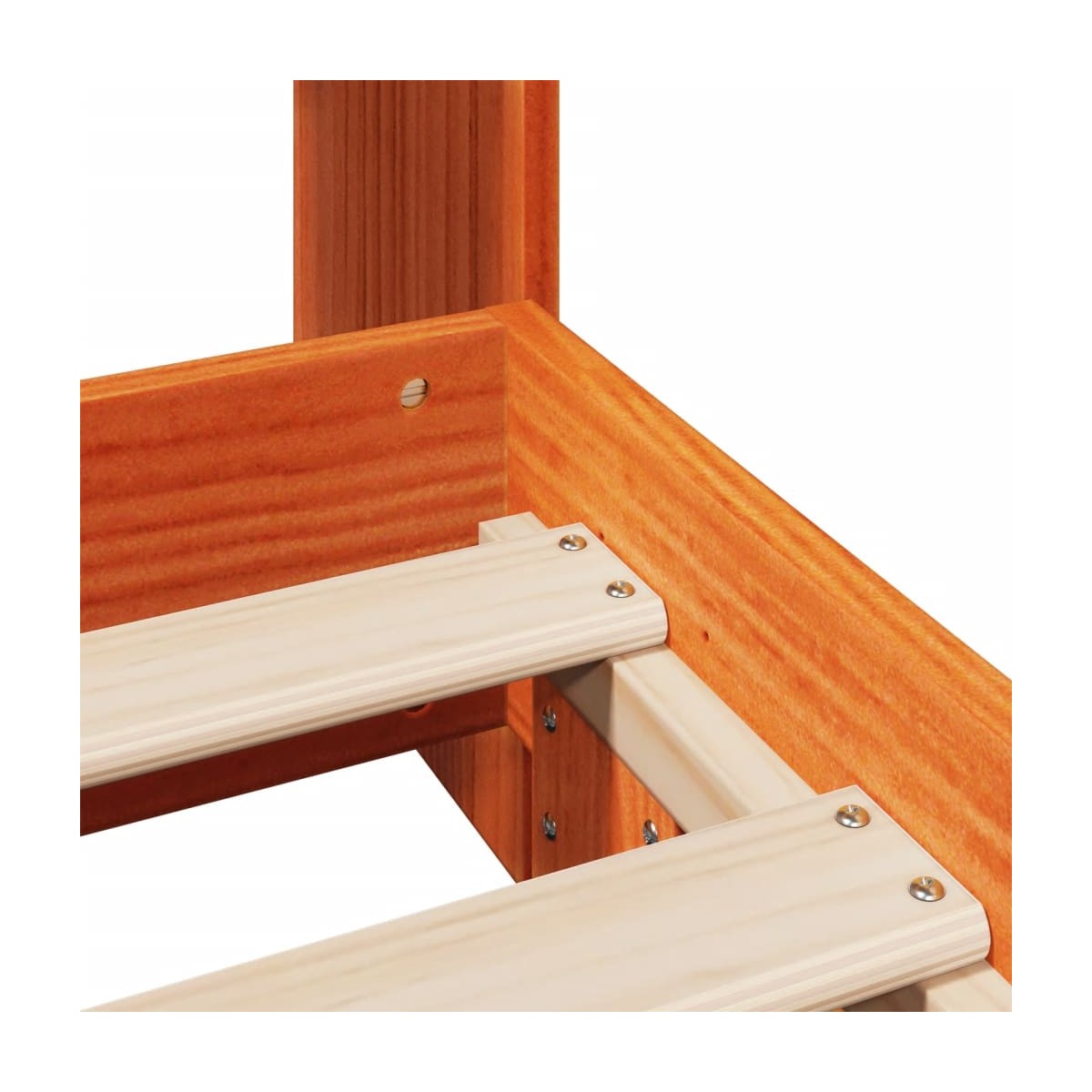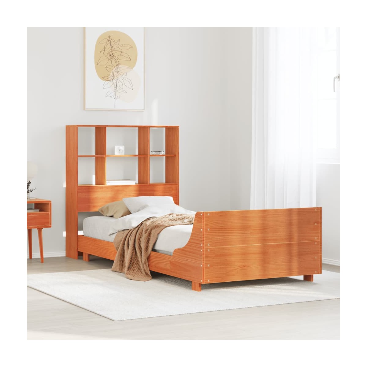 Consigue un sueño más reparador con esta estructura de cama. Es un aporte acogedor para cualquier dormitorio. Estructura estable y duradera: La madera de pino maciza es conocida por su resistencia y durabilidad. Sus vetas rectas y sus característicos nudos contribuyen a su encanto rústico.Aprovecha al máximo el espacio: Con 6 prácticos compartimentos, este cabecero es una opción que ahorra espacio y puede sustituir la necesidad de una mesita de noche, ayudando a maximizar el espacio de tu dormitorio y haciéndolo ideal para espacios pequeños o limitados.Cabecero versátil: Esta estructura de cama viene con un cabecero que proporciona un excelente soporte para la espalda cuando te sientas en la cama para leer o ver la televisión, a la vez que sirve como elemento decorativo.Somier de láminas para un soporte óptimo: La estructura de cama está equipada con un somier de láminas para el apoyo y la transpirabilidad del colchón. Información útil:El colchón no está incluido con la cama. Disponemos de una variada selección de colchones. Puedes echar un vistazo a nuestra tienda para buscar el colchón correspondiente.