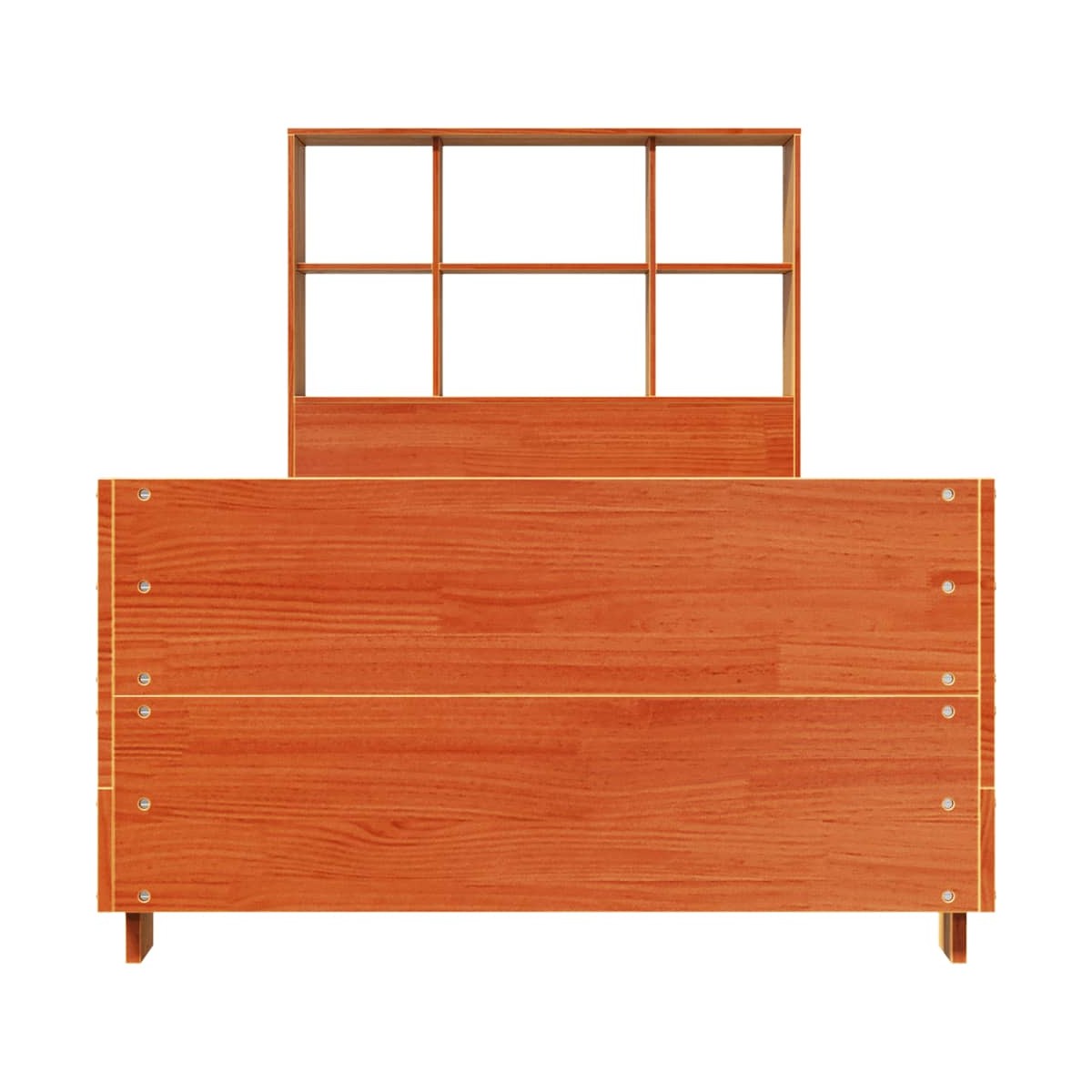 Consigue un sueño más reparador con esta estructura de cama. Es un aporte acogedor para cualquier dormitorio. Estructura estable y duradera: La madera de pino maciza es conocida por su resistencia y durabilidad. Sus vetas rectas y sus característicos nudos contribuyen a su encanto rústico.Aprovecha al máximo el espacio: Con 6 prácticos compartimentos, este cabecero es una opción que ahorra espacio y puede sustituir la necesidad de una mesita de noche, ayudando a maximizar el espacio de tu dormitorio y haciéndolo ideal para espacios pequeños o limitados.Cabecero versátil: Esta estructura de cama viene con un cabecero que proporciona un excelente soporte para la espalda cuando te sientas en la cama para leer o ver la televisión, a la vez que sirve como elemento decorativo.Somier de láminas para un soporte óptimo: La estructura de cama está equipada con un somier de láminas para el apoyo y la transpirabilidad del colchón. Información útil:El colchón no está incluido con la cama. Disponemos de una variada selección de colchones. Puedes echar un vistazo a nuestra tienda para buscar el colchón correspondiente.