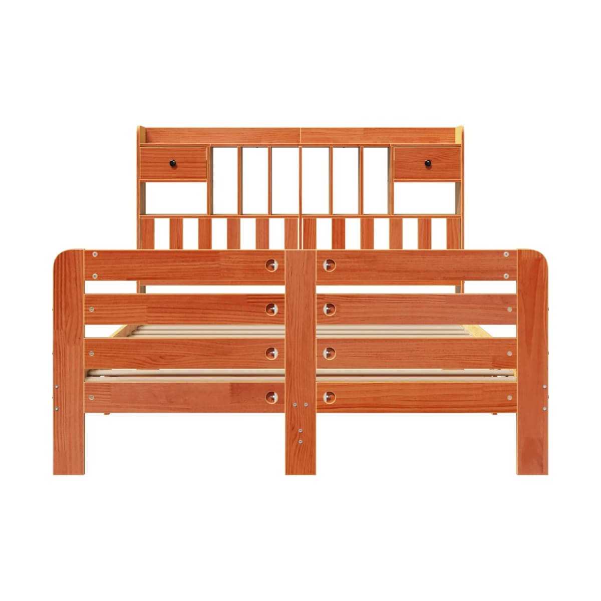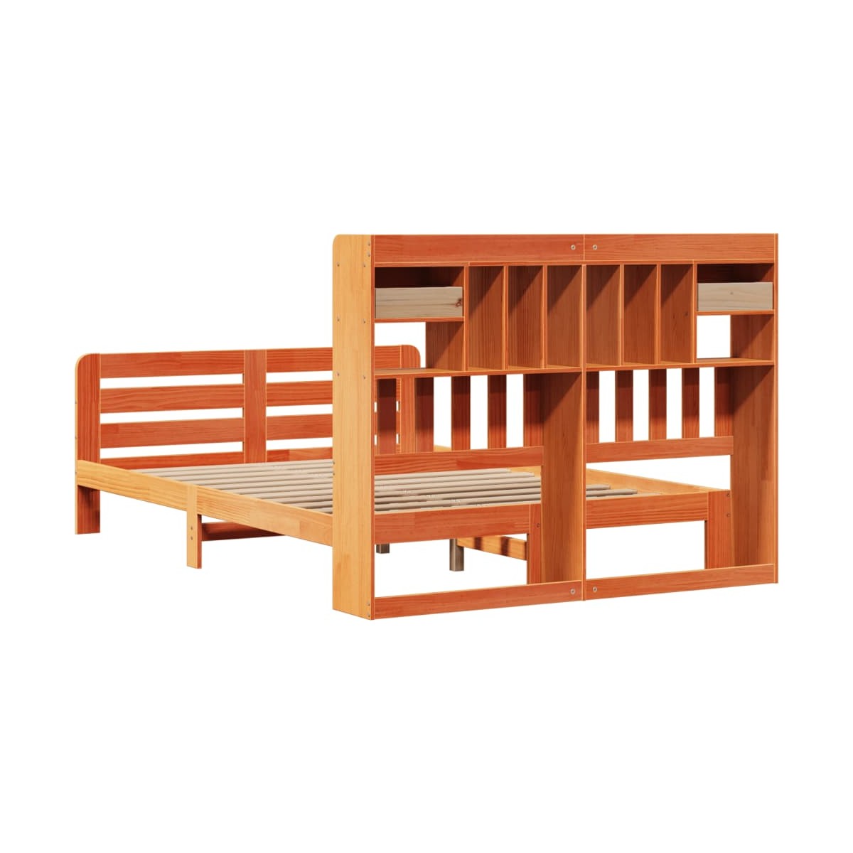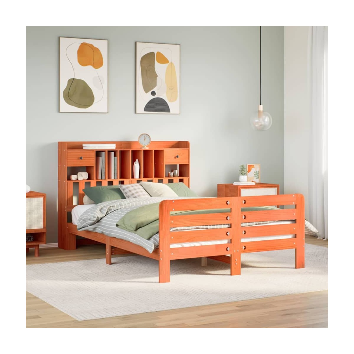 ¡Consigue una mejor noche de sueño reparador con esta cama con estantería! Es un aporte acogedor para cualquier dormitorio. Estructura estable y duradera: La madera de pino maciza es conocida por su resistencia y durabilidad. Sus vetas rectas y sus característicos nudos contribuyen a su encanto rústico. Somier de láminas para un soporte óptimo: La estructura de cama está equipada con un somier de láminas para el apoyo y la transpirabilidad del colchón. Amplio espacio de almacenamiento: El cabecero de estantería ofrece un amplio espacio de almacenamiento para mantener libros, artículos decorativos o pertenencias personales al alcance de la mano, lo que reduce el desorden en el dormitorio. Práctico pie de cama: El pie de cama no solo contribuye a la estabilidad general del marco de la cama, proporcionando un entorno seguro para dormir, sino que también asegura su colchón en su lugar y evita que las mantas, sábanas y otra ropa de cama se caigan del extremo de la cama, manteniendo una apariencia ordenada. Ahorro de espacio: Este cabecero es una opción de ahorro de espacio que puede sustituir la necesidad de una mesilla de noche, ayudando a maximizar el espacio de tu dormitorio, y haciéndolo ideal para espacios pequeños o limitados. Información útil:El colchón no está incluido con la cama. Disponemos de una variada selección de colchones. Puedes echar un vistazo a nuestra tienda para buscar el colchón correspondiente.