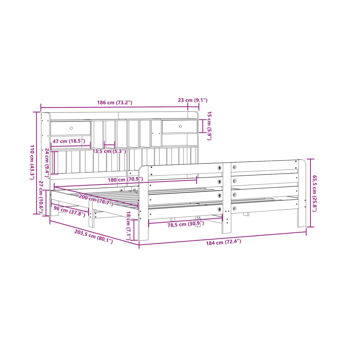 ¡Consigue una mejor noche de sueño reparador con esta cama con estantería! Es un aporte acogedor para cualquier dormitorio. Estructura estable y duradera: La madera de pino maciza es conocida por su resistencia y durabilidad. Sus vetas rectas y sus característicos nudos contribuyen a su encanto rústico. Somier de láminas para un soporte óptimo: La estructura de cama está equipada con un somier de láminas para el apoyo y la transpirabilidad del colchón. Amplio espacio de almacenamiento: El cabecero de estantería ofrece un amplio espacio de almacenamiento para mantener libros, artículos decorativos o pertenencias personales al alcance de la mano, lo que reduce el desorden en el dormitorio. Práctico pie de cama: El pie de cama no solo contribuye a la estabilidad general del marco de la cama, proporcionando un entorno seguro para dormir, sino que también asegura su colchón en su lugar y evita que las mantas, sábanas y otra ropa de cama se caigan del extremo de la cama, manteniendo una apariencia ordenada. Ahorro de espacio: Este cabecero es una opción de ahorro de espacio que puede sustituir la necesidad de una mesilla de noche, ayudando a maximizar el espacio de tu dormitorio, y haciéndolo ideal para espacios pequeños o limitados. Información útil:El colchón no está incluido con la cama. Disponemos de una variada selección de colchones. Puedes echar un vistazo a nuestra tienda para buscar el colchón correspondiente.