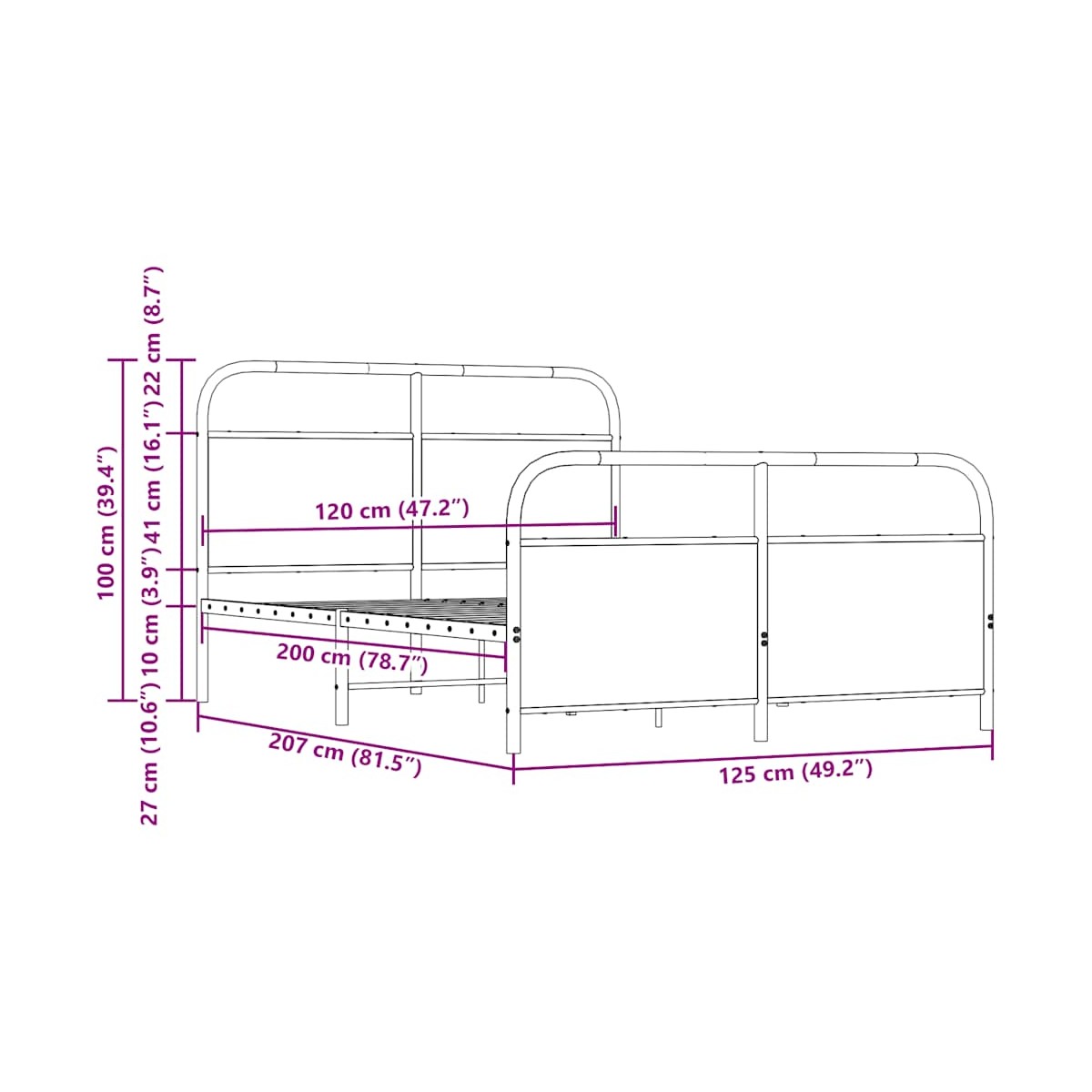 - Dimensiones adecuadas del colchón: 120 x 200 cm (ancho x largo) (el colchón no está incluido)