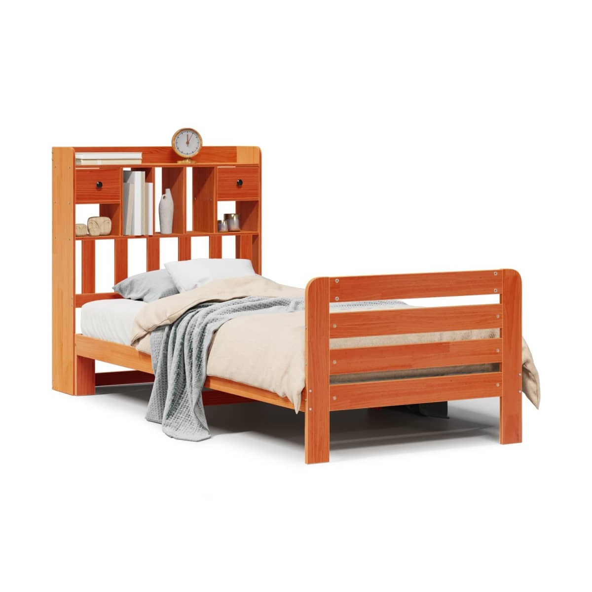 ¡Consigue una mejor noche de sueño reparador con esta cama con estantería! Es un aporte acogedor para cualquier dormitorio. Estructura estable y duradera: La madera de pino maciza es conocida por su resistencia y durabilidad. Sus vetas rectas y sus característicos nudos contribuyen a su encanto rústico. Somier de láminas para un soporte óptimo: La estructura de cama está equipada con un somier de láminas para el apoyo y la transpirabilidad del colchón. Amplio espacio de almacenamiento: El cabecero de estantería ofrece un amplio espacio de almacenamiento para mantener libros, artículos decorativos o pertenencias personales al alcance de la mano, lo que reduce el desorden en el dormitorio. Práctico pie de cama: El pie de cama no solo contribuye a la estabilidad general del marco de la cama, proporcionando un entorno seguro para dormir, sino que también asegura su colchón en su lugar y evita que las mantas, sábanas y otra ropa de cama se caigan del extremo de la cama, manteniendo una apariencia ordenada. Ahorro de espacio: Este cabecero es una opción de ahorro de espacio que puede sustituir la necesidad de una mesilla de noche, ayudando a maximizar el espacio de tu dormitorio, y haciéndolo ideal para espacios pequeños o limitados. Información útil:El colchón no está incluido con la cama. Disponemos de una variada selección de colchones. Puedes echar un vistazo a nuestra tienda para buscar el colchón correspondiente.