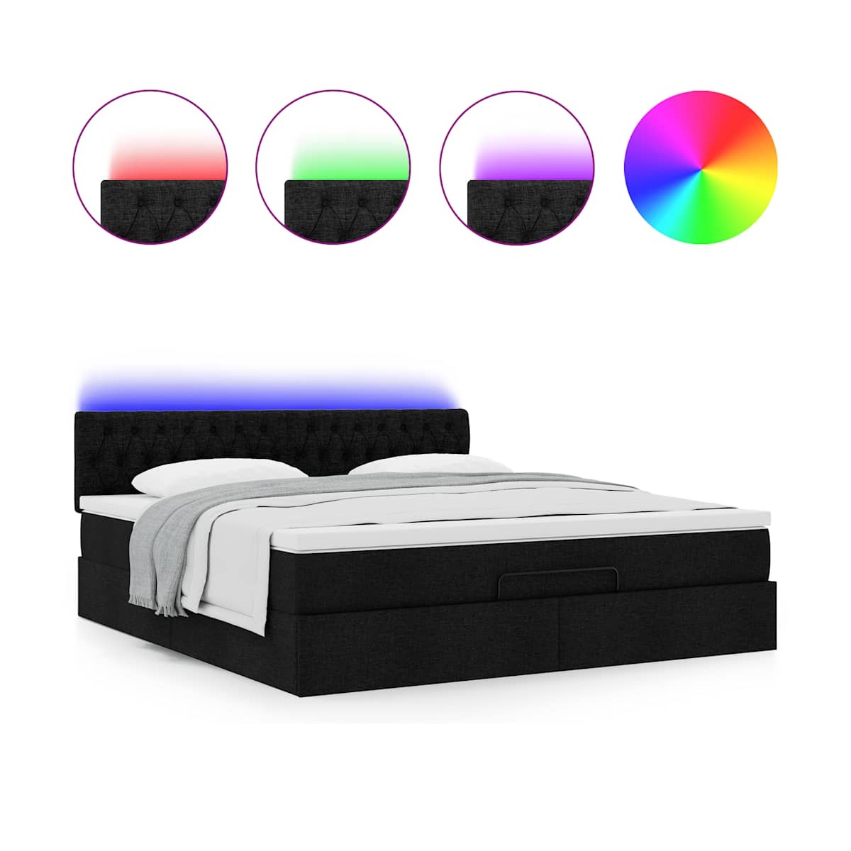 ¡Utilice esta estructura de cama otomana con colchón para disfrutar de una noche de sueño reparador! Le ofrece una solución de almacenamiento y una experiencia de sueño cómoda. Material suave y duradero: La tela de poliéster ofrece una combinación de suavidad, transpirabilidad y durabilidad, lo que garantiza que experimentes la máxima comodidad.Colchón de muelles ensacados: Este colchón de muelles ensacados cuenta con muelles ensacados individuales que funcionan de forma independiente para proporcionar un apoyo personalizado reaccionando únicamente a la presión de cada zona. Este diseño evita que se enrolle y reduce la transferencia de movimiento en comparación con los colchones tradicionales de bobina abierta. Cada muelle ensacado sostiene el cuerpo individualmente.amplio espacio de almacenamiento debajo de la cama: gracias al mecanismo de elevación hidráulico, el marco de la cama ofrece un amplio espacio de almacenamiento debajo de la cama, maximizando el espacio sin ocupar área adicional en el piso.Cubrecolchón cómodo: Este cubrecolchón mejora el soporte y la comodidad con su superficie suave y transpirable al tiempo que prolonga la vida útil de su colchón. Su funda extraíble permite un fácil lavado, lo que facilita el mantenimiento.Luces LED para un ambiente agradable: Esta cama cuenta con luces LED que se pueden ajustar fácilmente para crear un espectáculo de luces personalizado. Puedes personalizar los modos, los colores y el brillo para mejorar el ambiente de tu espacio interior. Información útil:El producto tiene un conector USB que necesita una fuente de alimentación USB certificada de 5 V (no incluida).Por razones de higiene, el colchón no puede devolverse si se ha quitado o abierto el embalaje.Únicamente puedes cortar por la parte con el símbolo de las tijeras y únicamente la parte con el USB seguirá funcionando como antes.