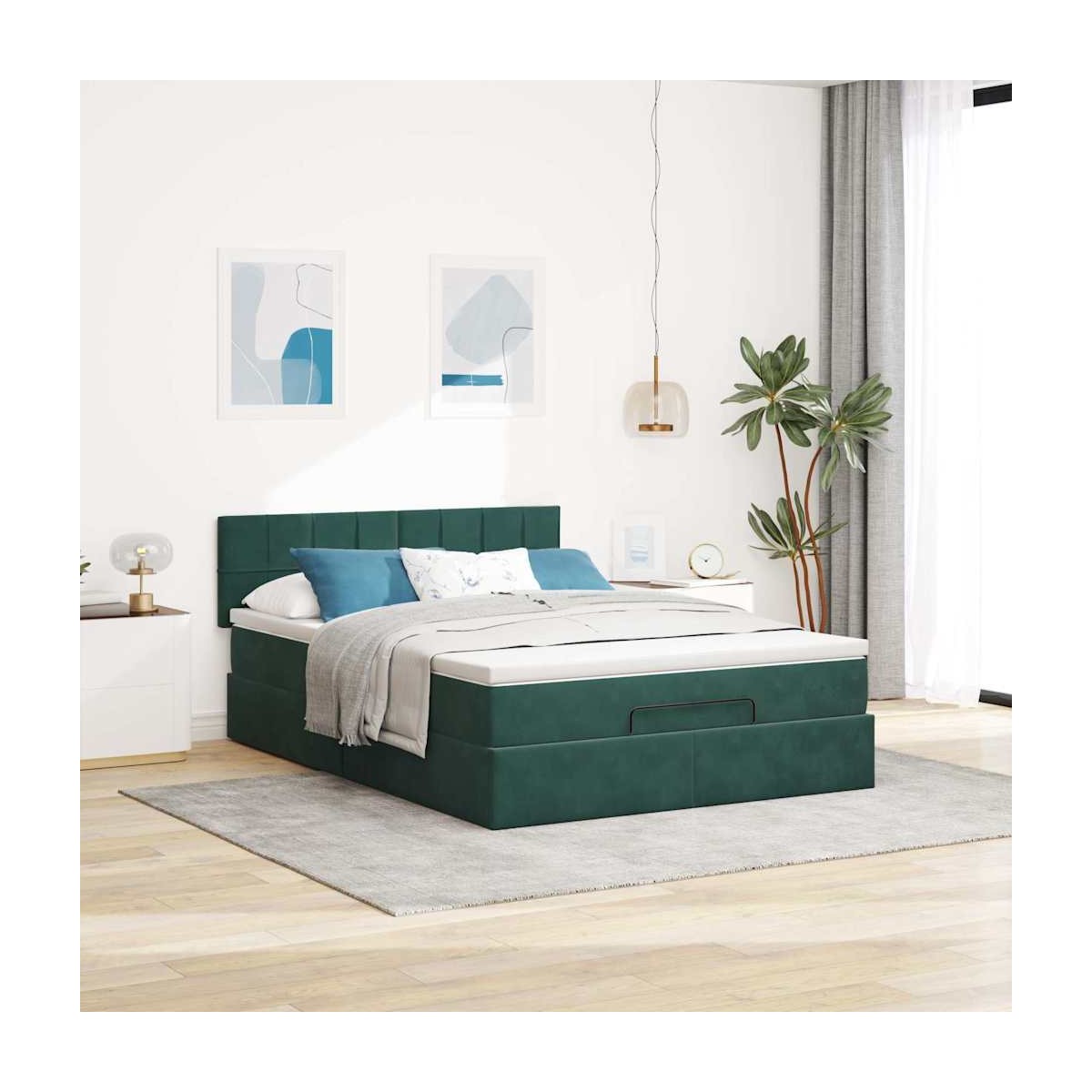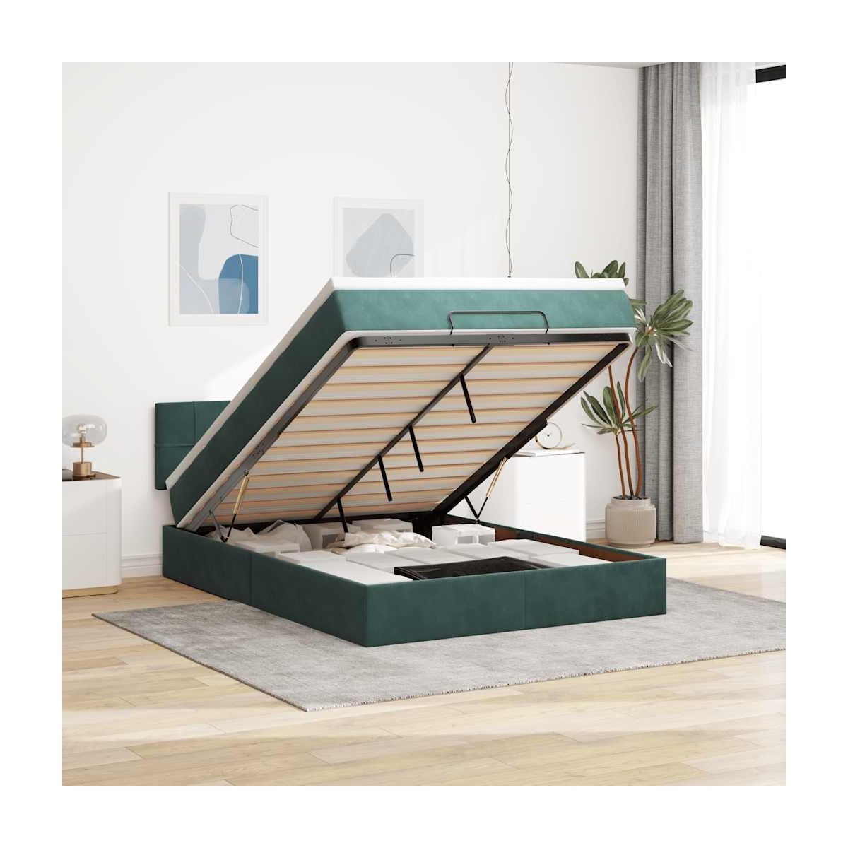 ¡Utilice esta estructura de cama otomana con colchón para disfrutar de una noche de sueño reparador! Le ofrece una solución de almacenamiento y una experiencia de sueño cómoda. Material suave y cómodo: La tela de terciopelo ofrece una superficie suave y lisa que proporciona una agradable sensación contra el tacto, aportándole calidez y el máximo confort.Colchón de muelles ensacados: Este colchón de muelles ensacados cuenta con muelles ensacados individuales que funcionan de forma independiente para proporcionar un apoyo personalizado reaccionando únicamente a la presión de cada zona. Este diseño evita que se enrolle y reduce la transferencia de movimiento en comparación con los colchones tradicionales de bobina abierta. Cada muelle ensacado sostiene el cuerpo individualmente.amplio espacio de almacenamiento debajo de la cama: gracias al mecanismo de elevación hidráulico, el marco de la cama ofrece un amplio espacio de almacenamiento debajo de la cama, maximizando el espacio sin ocupar área adicional en el piso.Cubrecolchón cómodo: Este cubrecolchón mejora el soporte y la comodidad con su superficie suave y transpirable al tiempo que prolonga la vida útil de su colchón. Su funda extraíble permite un fácil lavado, lo que facilita el mantenimiento. Información útil:Por razones de higiene, el colchón no puede devolverse si se ha quitado o abierto el embalaje.