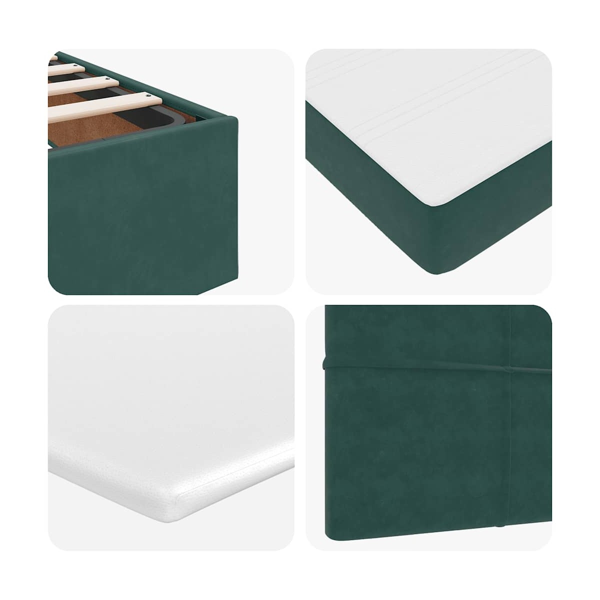 - Material: Terciopelo (100% poliéster), metal, madera contrachapada, madera contrachapada