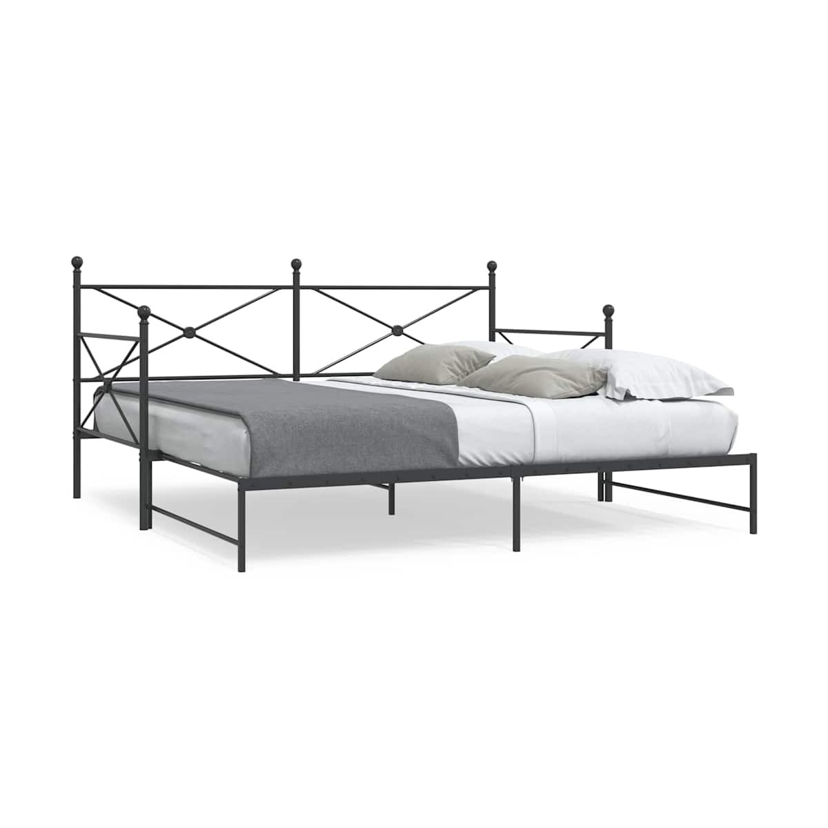 Este sofá cama 2 en 1 con cama nido, que sirve como sofá y cama, es un complemento práctico y llamativo para tu salón o dormitorio. Estructura estable y duradera: El acero es fuerte, estable y duradero, lo que lo convierte en la opción ideal para una amplia gama de aplicaciones, desde la fabricación de muebles hasta la construcción.Somier de láminas para un soporte óptimo: El sofá cama está equipado con un somier de láminas para proporcionar apoyo y transpirabilidad a su colchón.Espacio de almacenamiento adicional: para mayor comodidad, la cama de invitados tiene un espacio adicional debajo para mantener sus cajas de almacenamiento fuera de la vista.Patas estables y duraderas: este sofá cama está sostenido por patas resistentes que garantizan estabilidad, seguridad y firmeza.Sofá cama versátil: el sofá cama funciona como sofá durante el día y se convierte fácilmente en una cama doble por la noche sacando la cama nido, lo que proporciona una solución conveniente para recibir invitados y maximizar el espacio. Información útil:El colchón no está incluido con la cama. Ofrecemos una variada selección de colchones. Puedes echar un vistazo a nuestra tienda para buscar el colchón correspondiente.