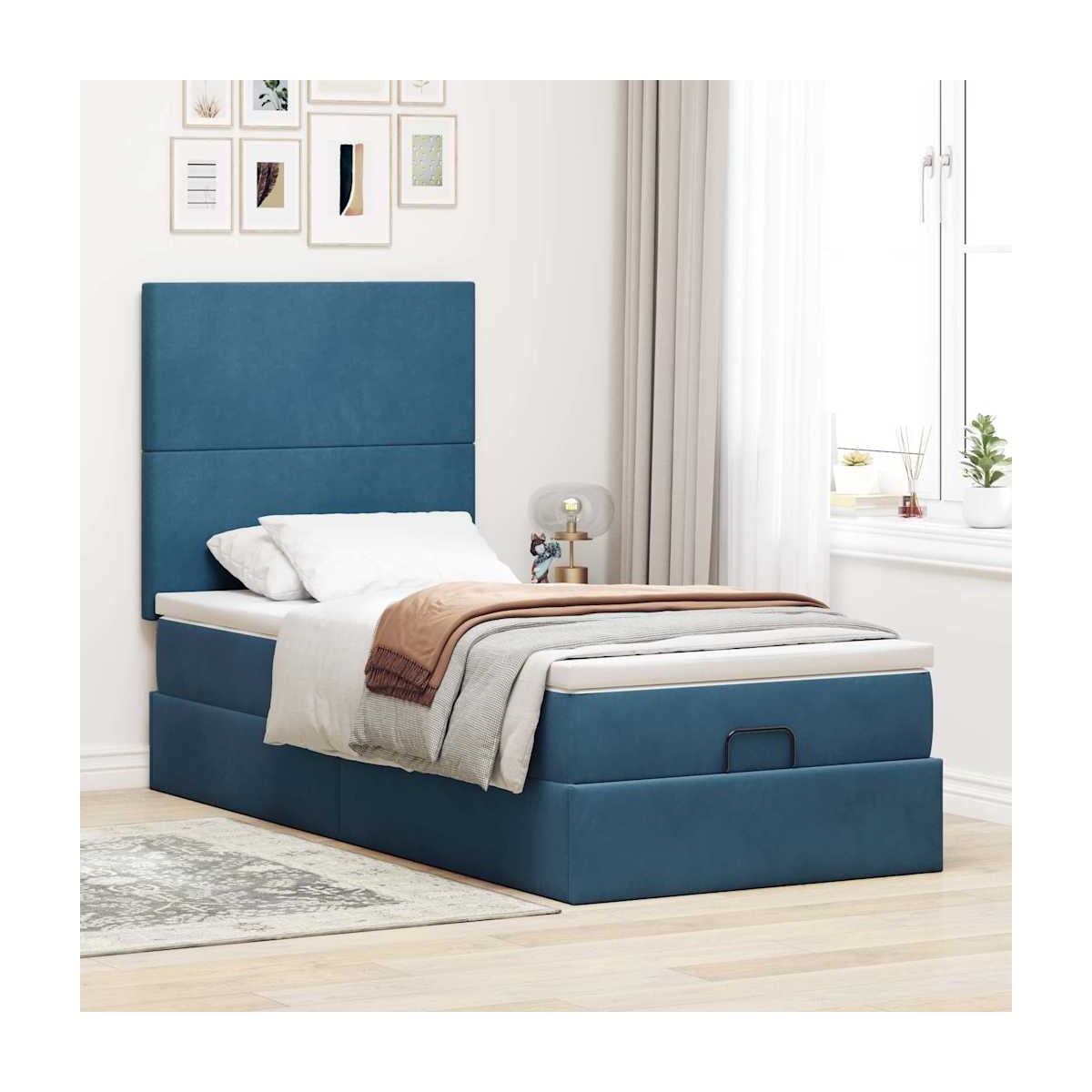 ¡Utilice esta estructura de cama otomana con colchones para disfrutar de una noche de sueño reparador! Le ofrece una solución de almacenamiento y una experiencia de sueño cómoda.Material suave y cómodo: La tela de terciopelo ofrece una superficie suave y lisa que proporciona una agradable sensación contra el tacto, aportándole calidez y el máximo confort.Colchón de muelles ensacados: Este colchón de muelles ensacados cuenta con muelles ensacados individuales que funcionan de forma independiente para proporcionar un apoyo personalizado reaccionando únicamente a la presión de cada zona. Este diseño evita que se enrolle y reduce la transferencia de movimiento en comparación con los colchones tradicionales de bobina abierta. Cada muelle ensacado sostiene el cuerpo individualmente.amplio espacio de almacenamiento debajo de la cama: gracias al mecanismo de elevación hidráulico, el marco de la cama ofrece un amplio espacio de almacenamiento debajo de la cama, maximizando el espacio sin ocupar área adicional en el piso.Cubrecolchón cómodo: Este cubrecolchón mejora el soporte y la comodidad con su superficie suave y transpirable al tiempo que prolonga la vida útil de su colchón. Su funda extraíble permite un fácil lavado, lo que facilita el mantenimiento.Luces LED para un ambiente agradable: Esta cama cuenta con luces LED que se pueden ajustar fácilmente para crear un espectáculo de luces personalizado. Puedes personalizar los modos, los colores y el brillo para mejorar el ambiente de tu espacio interior. Información útil:El producto tiene un conector USB que necesita una fuente de alimentación USB certificada de 5 V (no incluida).Por razones de higiene, el colchón no puede devolverse si se ha quitado o abierto el embalaje.Únicamente puedes cortar por la parte con el símbolo de las tijeras y únicamente la parte con el USB seguirá funcionando como antes.