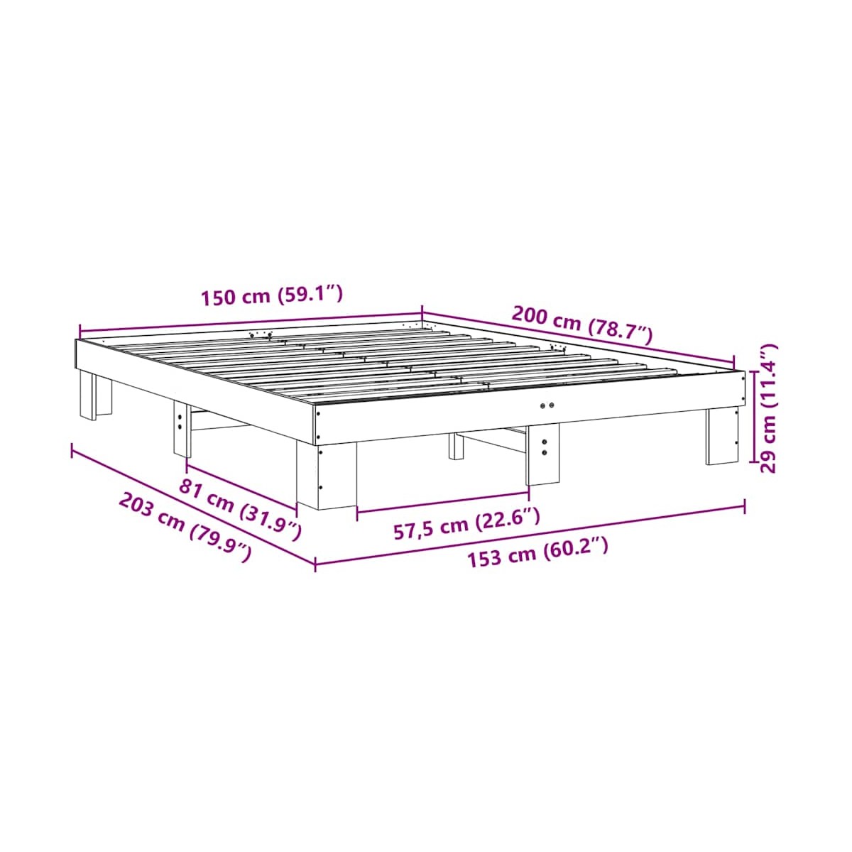 - Tamaño de colchón compatible: 150 x 200 cm (ancho x largo) (colchón no incluido)