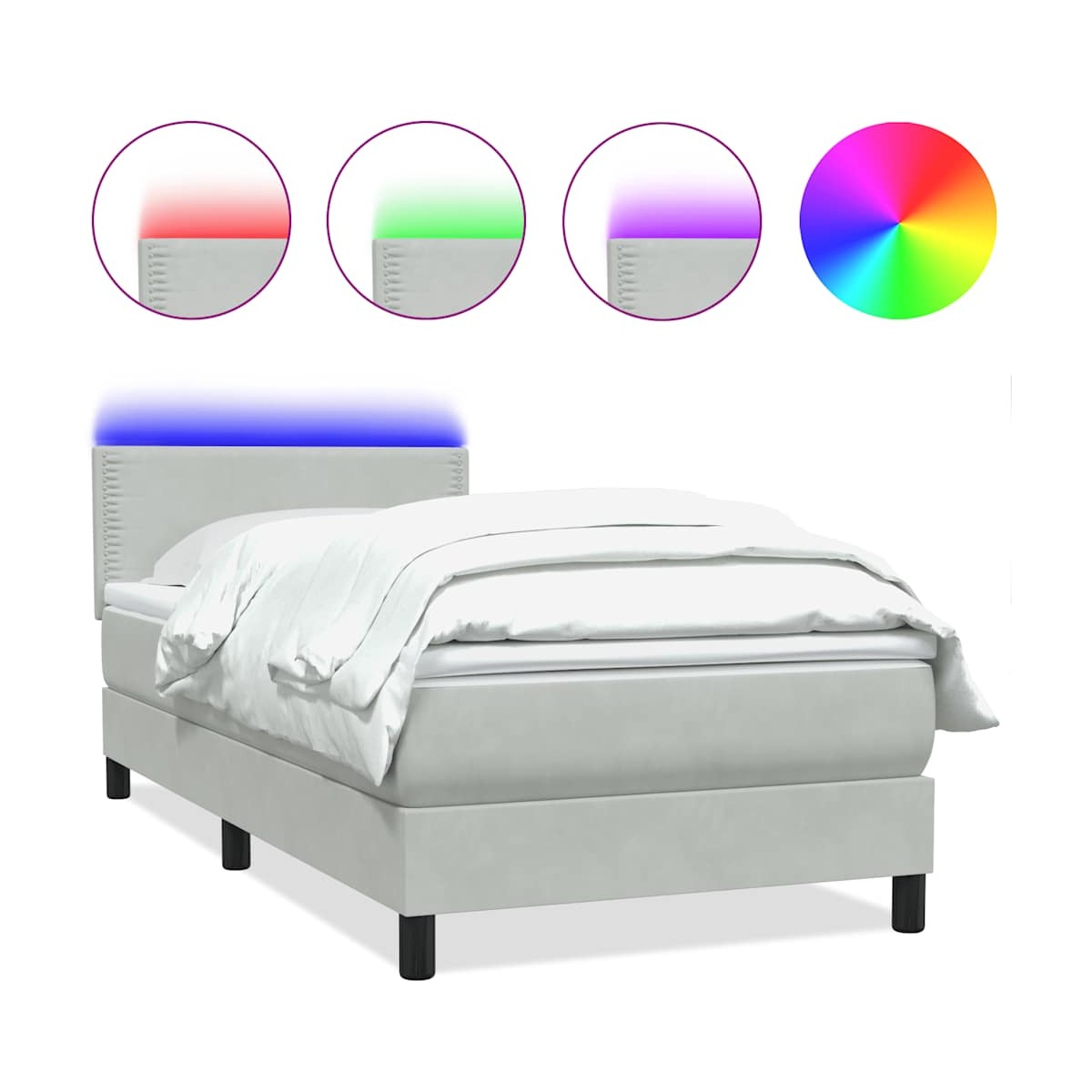 Utiliza esta cama de muelles para disfrutar de un sueño reparador. Te ofrece la máxima relajación y un sueño placentero. Material suave y cómodo: La tela de terciopelo ofrece una superficie suave y lisa que proporciona una agradable sensación contra el tacto, aportándole calidez y el máximo confort.Colchón de muelles ensacados: Este colchón de muelles ensacados cuenta con muelles ensacados individuales que funcionan de forma independiente para proporcionar un apoyo personalizado reaccionando únicamente a la presión de cada zona. Este diseño evita que se enrolle y reduce la transferencia de movimiento en comparación con los colchones tradicionales de bobina abierta. Cada muelle ensacado sostiene el cuerpo individualmente.Cubrecolchón cómodo: Este cubrecolchón mejora el soporte y la comodidad con su superficie suave y transpirable al tiempo que prolonga la vida útil de su colchón. Su funda extraíble permite un fácil lavado, lo que facilita el mantenimiento.Cabecero práctico: El cabecero de la cama es ajustable en altura según tus preferencias. El cabecero de la cama te proporciona un excelente apoyo para la espalda mientras estás sentado en la cama para leer o ver la televisión.Luces LED para un ambiente agradable: Esta cama cuenta con luces LED que se pueden ajustar fácilmente para crear un espectáculo de luces personalizado. Puedes personalizar los modos, los colores y el brillo para mejorar el ambiente de tu espacio interior. Información útil:El producto tiene un conector USB que necesita una fuente de alimentación USB certificada de 5 V (no incluida).Por razones de higiene, el colchón no puede devolverse si se ha quitado o abierto el embalaje.Únicamente puedes cortar por la parte con el símbolo de las tijeras y únicamente la parte con el USB seguirá funcionando como antes.