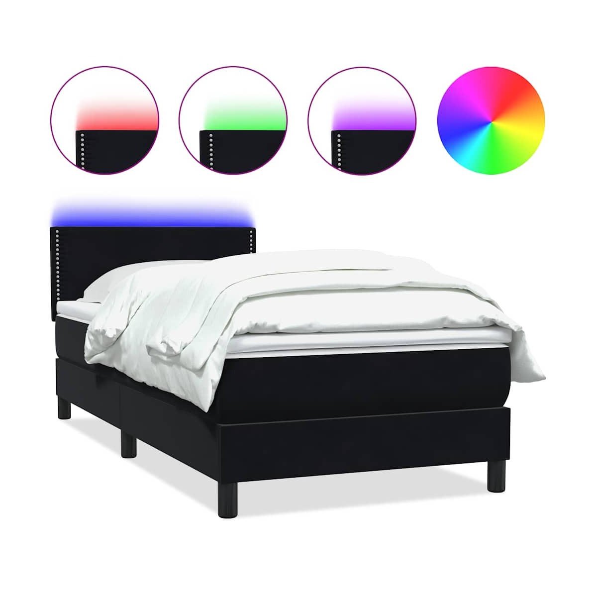 Utiliza esta cama de muelles para disfrutar de un sueño reparador. Te ofrece la máxima relajación y un sueño placentero. Material suave y cómodo: La tela de terciopelo ofrece una superficie suave y lisa que proporciona una agradable sensación contra el tacto, aportándole calidez y el máximo confort.Colchón de muelles ensacados: Este colchón de muelles ensacados cuenta con muelles ensacados individuales que funcionan de forma independiente para proporcionar un apoyo personalizado reaccionando únicamente a la presión de cada zona. Este diseño evita que se enrolle y reduce la transferencia de movimiento en comparación con los colchones tradicionales de bobina abierta. Cada muelle ensacado sostiene el cuerpo individualmente.Cubrecolchón cómodo: Este cubrecolchón mejora el soporte y la comodidad con su superficie suave y transpirable al tiempo que prolonga la vida útil de su colchón. Su funda extraíble permite un fácil lavado, lo que facilita el mantenimiento.Cabecero práctico: El cabecero de la cama es ajustable en altura según tus preferencias. El cabecero de la cama te proporciona un excelente apoyo para la espalda mientras estás sentado en la cama para leer o ver la televisión.Luces LED para un ambiente agradable: Esta cama cuenta con luces LED que se pueden ajustar fácilmente para crear un espectáculo de luces personalizado. Puedes personalizar los modos, los colores y el brillo para mejorar el ambiente de tu espacio interior. Información útil:El producto tiene un conector USB que necesita una fuente de alimentación USB certificada de 5 V (no incluida).Por razones de higiene, el colchón no puede devolverse si se ha quitado o abierto el embalaje.Únicamente puedes cortar por la parte con el símbolo de las tijeras y únicamente la parte con el USB seguirá funcionando como antes.