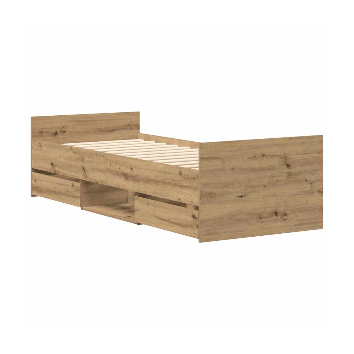 Consigue un sueño más reparador con esta estructura de cama. Es un aporte acogedor para cualquier dormitorio. Material duradero: La madera de ingeniería tiene una calidad excepcional, con una superficie lisa y también cuenta con fuerza, estabilidad y resistencia a la humedad. Cabecero y estribo de cama funcionales: El cabecero y el estribo de cama mantienen el colchón en su lugar. Además, la cabecera te brinda un excelente soporte para la espalda mientras estás sentado leyendo o mirando la televisión.Listones robustos: Los listones de madera contrachapada proporcionan una buena distribución del peso, lo que garantiza que el colchón se mantenga en tu sitio con cada giro y vuelta del cuerpo mientras duermes.Aproveche al máximo el espacio: esta cama cuenta con cuatro cajones debajo, que brindan almacenamiento para artículos como ropa de cama adicional, ropa de temporada y juguetes. Información útil:El colchón no está incluido con la cama. Ofrecemos una variada selección de colchones. Puedes echar un vistazo a nuestra tienda para buscar el colchón correspondiente.