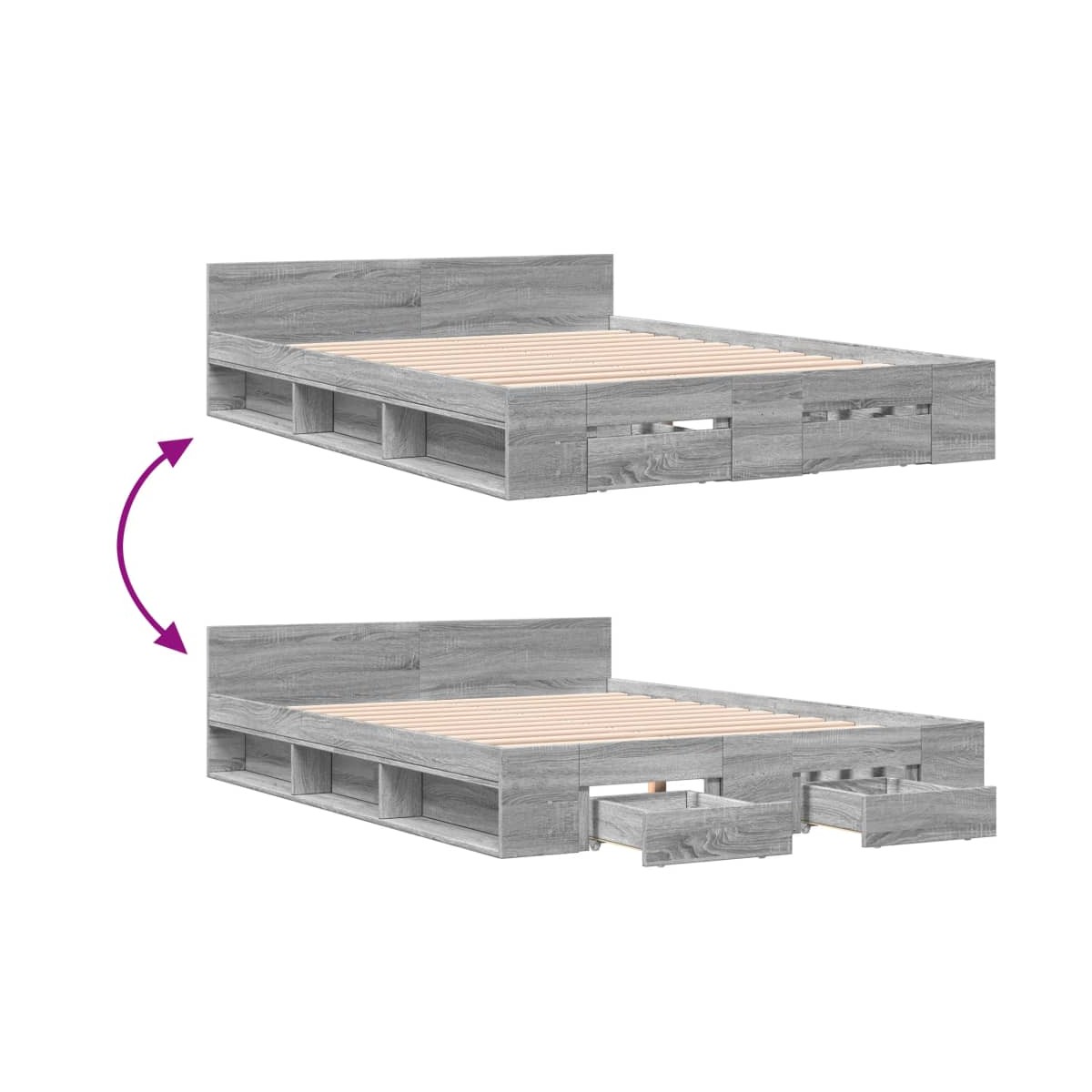 ¡Añade un toque moderno a tu dormitorio con esta estructura de cama con cajones! Es un aporte práctico y decorativo para tu hogar. Material duradero: La estructura de la cama está hecha de madera de ingeniería. La madera de ingeniería tiene una calidad excepcional, con una superficie lisa y también con fuerza, estabilidad y resistencia a la humedad.Listones robustos: Los listones de madera contrachapada proporcionan una buena distribución del peso, lo que garantiza que el colchón se mantenga en tu sitio con cada giro y vuelta del cuerpo mientras duermes.Función de almacenamiento: Los cajones de la cama y los compartimentos laterales incluidos brindan un amplio espacio de almacenamiento para guardar tus elementos esenciales, manteniendo tu habitación limpia y ordenada. Información útil:El colchón no está incluido con la cama. Disponemos de una variada selección de colchones. Puedes echar un vistazo a nuestra tienda para buscar el colchón correspondiente.