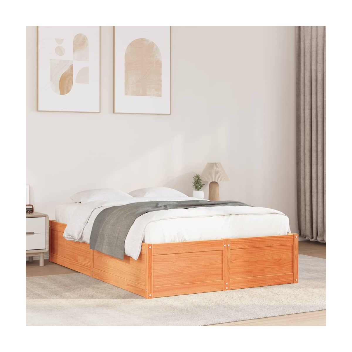 ¡Añade un toque moderno a tu dormitorio con esta estructura de cama! Es un aporte práctico y decorativo para tu hogar. Estructura estable y duradera: La madera de pino maciza es conocida por su resistencia y durabilidad. Sus vetas rectas y sus característicos nudos contribuyen a su encanto rústico.Listones robustos: Los listones de madera contrachapada proporcionan una buena distribución del peso, lo que garantiza que el colchón se mantenga en tu sitio con cada giro y vuelta del cuerpo mientras duermes.Diseño moderno: ¡Da un estilo moderno a tu casa! El moderno diseño posee líneas limpias, aspectos minimalistas y luz natural como parte del estilo de interiorismo. Información útil:El colchón no está incluido con la cama. Disponemos de una variada selección de colchones. Puedes echar un vistazo a nuestra tienda para buscar el colchón correspondiente.