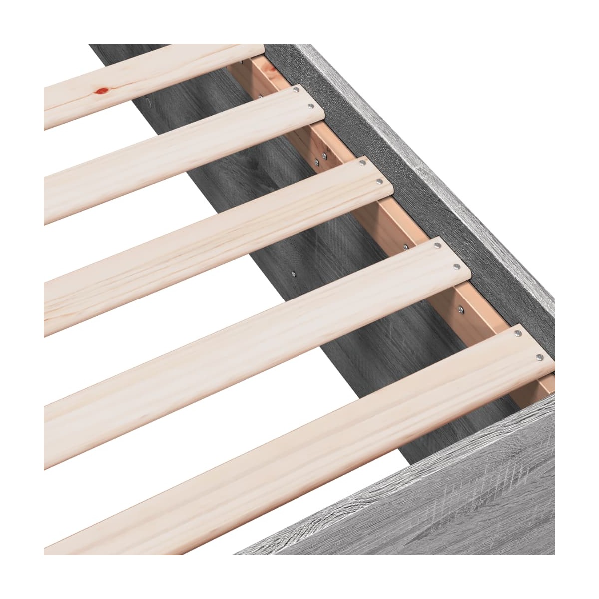 Consigue un sueño más reparador con esta estructura de cama. Es un aporte acogedor para cualquier dormitorio. Material duradero: La madera de ingeniería tiene una calidad excepcional, con una superficie lisa y también cuenta con fuerza, estabilidad y resistencia a la humedad.Listones para un soporte óptimo: El somier se completa con listones para ofrecer un soporte esencial y transpirabilidad a tu colchón.Diseño moderno: ¡Da un estilo moderno a tu casa! El moderno diseño posee líneas limpias, aspectos minimalistas y luz natural como parte del estilo de interiorismo. Información útil:El colchón no está incluido con la cama. Disponemos de una variada selección de colchones. Puedes echar un vistazo a nuestra tienda para buscar el colchón correspondiente.