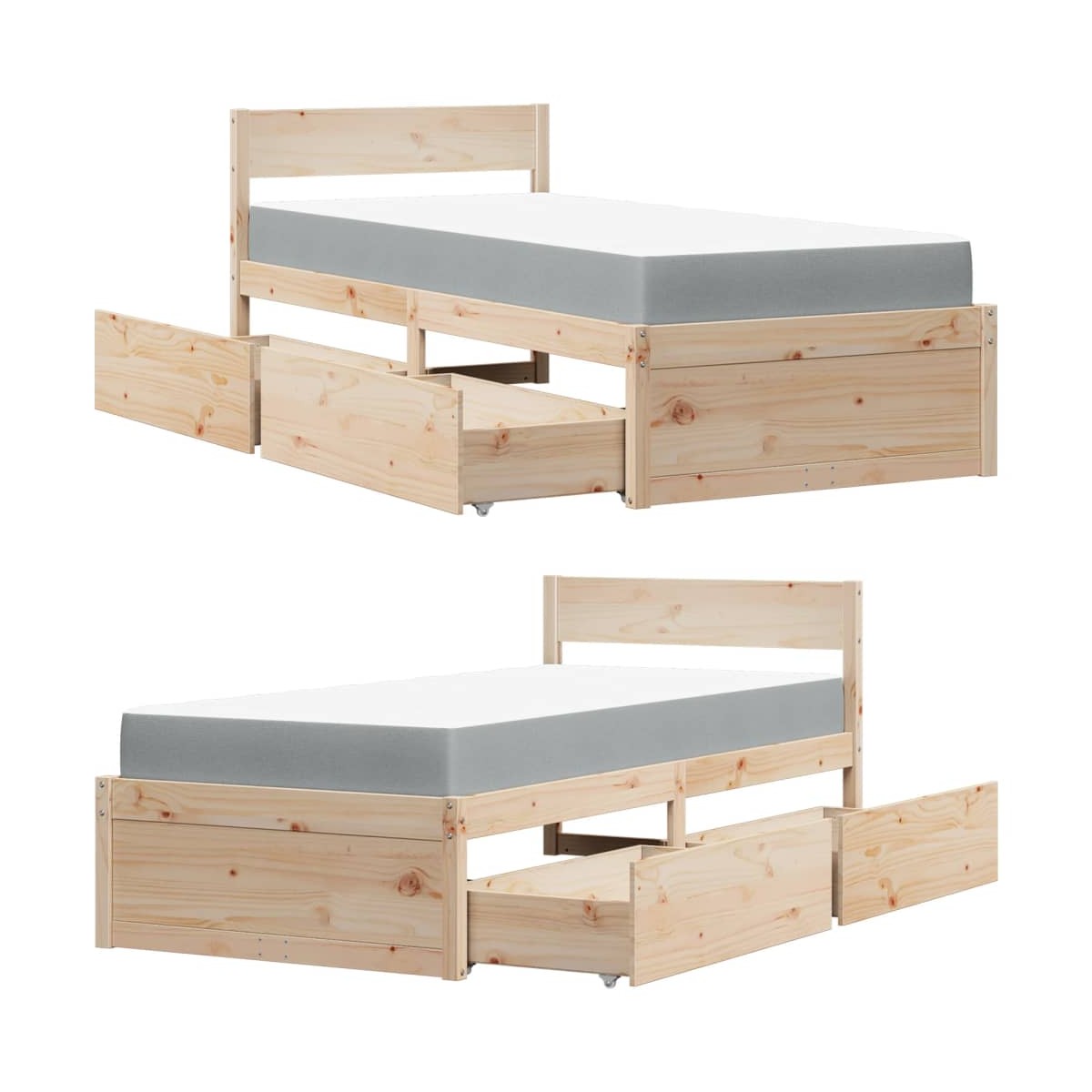 Con un diseño sencillo a la par que atemporal, esta cama está pensada para ser un aporte verdaderamente práctico y decorativo para tu dormitorio. Madera de pino maciza: La madera de pino maciza es un bonito material natural. La madera de pino tiene vetas rectas, y los nudos dan al material su distintivo aspecto rústico.Material de primera calidad: La tela posee un aspecto sencillo y limpio, y es transpirable y duradera.Colchón de muelles ensacados: Este colchón de muelles ensacados cuenta con muelles ensacados individuales que funcionan de forma independiente para proporcionar un apoyo personalizado reaccionando únicamente a la presión de cada zona. Este diseño evita que se enrolle y reduce la transferencia de movimiento en comparación con los colchones tradicionales de bobina abierta. Cada muelle ensacado sostiene el cuerpo individualmente.Función de almacenaje: Los cajones de cama incluidos proporcionan amplio espacio de almacenamiento para guardar cosas básicas, y mantienen la habitación limpia y ordenada.Listones para un soporte óptimo: El somier se completa con listones para ofrecer un soporte esencial y transpirabilidad a tu colchón. Información útil:Por razones de higiene, el colchón no puede devolverse si se ha quitado o abierto el embalaje.
