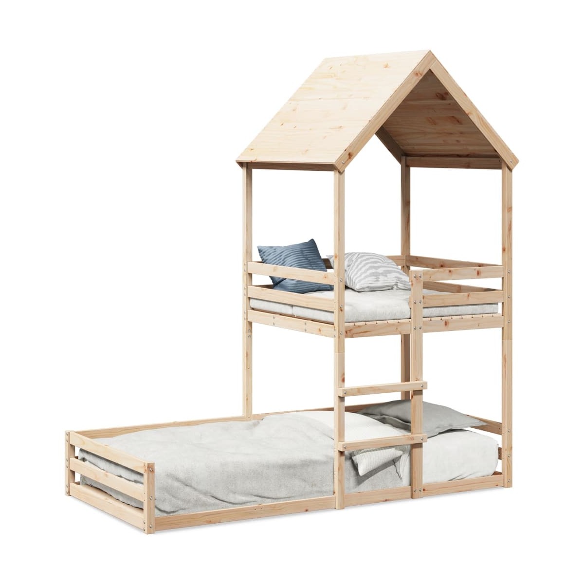 Esta litera de madera es elegante y funcional, por lo que es un aporte perfecto para cualquier habitación con espacio limitado. Estructura estable y duradera: La madera de pino maciza es conocida por su resistencia y durabilidad. Sus vetas rectas y sus característicos nudos contribuyen a su encanto rústico.Muy divertida: Puedes crear un escondite con esta litera infantil que ofrece a tu hijo mucha diversión a la hora de dormir. Este innovador añadido al cuarto no solo será un punto emocionante, sino que también traerá asombro y emoción a la habitación de los niños.Cómoda escalera: Esta litera de madera tiene una escalera para subir y bajar de la cama con comodidad.Listones para un soporte óptimo: El somier se completa con listones para ofrecer un soporte esencial y transpirabilidad a tu colchón. Información útil:Los colchones no están incluido con la cama. Ofrecemos una variada selección de colchones. Puedes echar un vistazo a nuestra tienda para buscar el colchón correspondiente.Esta cama está diseñada para niños mayores de 4 años.