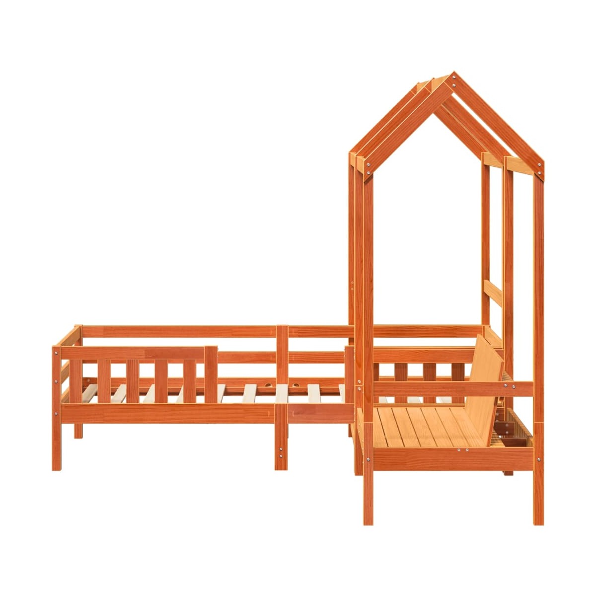 ¡Añade un toque moderno a tu dormitorio con este juego de cama y banco! Es un aporte práctico y decorativo para tu hogar. Madera de pino maciza: La madera de pino maciza es un bonito material natural. La madera de pino tiene vetas rectas, y los nudos dan al material su distintivo aspecto rústico.Listones robustos: Los listones de madera contrachapada proporcionan una buena distribución del peso, lo que garantiza que el colchón se mantenga en tu sitio con cada giro y vuelta del cuerpo mientras duermes.Práctico respaldo: El banco está diseñado con un respaldo para que puedas relajar tu cuerpo con más comodidad.Gran diversión: Al combinar el techo con la cama de tu hijo, puedes crear un escondite que le ofrezca a tu hijo mucha diversión a la hora de acostarse. Este innovador añadido al cuarto no solo será un punto emocionante, sino que también traerá asombro y emoción a la habitación de los niños.Diseño moderno: ¡Da un estilo moderno a tu casa! El moderno diseño posee líneas limpias, aspectos minimalistas y luz natural como parte del estilo de interiorismo. Información útil:El colchón no está incluido con la cama. Disponemos de una variada selección de colchones. Puedes echar un vistazo a nuestra tienda para buscar el colchón correspondiente.