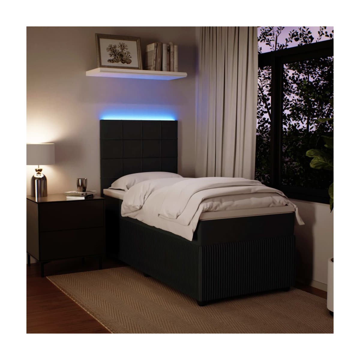 Utiliza esta cama de muelles para disfrutar de un sueño reparador. Te ofrece la máxima relajación y un sueño placentero. Material suave y cómodo: La tela de terciopelo ofrece una superficie suave y lisa que proporciona una agradable sensación contra el tacto, aportándole calidez y el máximo confort. Colchón de muelles ensacados: Este colchón de muelles ensacados cuenta con muelles ensacados individuales que funcionan de forma independiente para proporcionar un apoyo personalizado reaccionando únicamente a la presión de cada zona. Este diseño evita que se enrolle y reduce la transferencia de movimiento en comparación con los colchones tradicionales de bobina abierta. Cada muelle ensacado sostiene el cuerpo individualmente. Luces LED para un ambiente agradable: Esta cama cuenta con luces LED que se pueden ajustar fácilmente para crear un espectáculo de luces personalizado. Puedes personalizar los modos, los colores y el brillo para mejorar el ambiente de tu espacio interior. Cabecero regulable en altura: El cabecero es ajustable en altura para adaptarse a tus preferencias. Cubrecolchón cómodo: Este cubrecolchón mejora el soporte y la comodidad con su superficie suave y transpirable al tiempo que prolonga la vida útil de su colchón. Su funda extraíble permite un fácil lavado, lo que facilita el mantenimiento. Información útil: El producto tiene un conector USB que necesita una fuente de alimentación USB certificada de 5 V (no incluida). Por razones de higiene, el colchón no puede devolverse si se ha quitado o abierto el embalaje. Únicamente puedes cortar por la parte con el símbolo de las tijeras y únicamente la parte con el USB seguirá funcionando como antes.