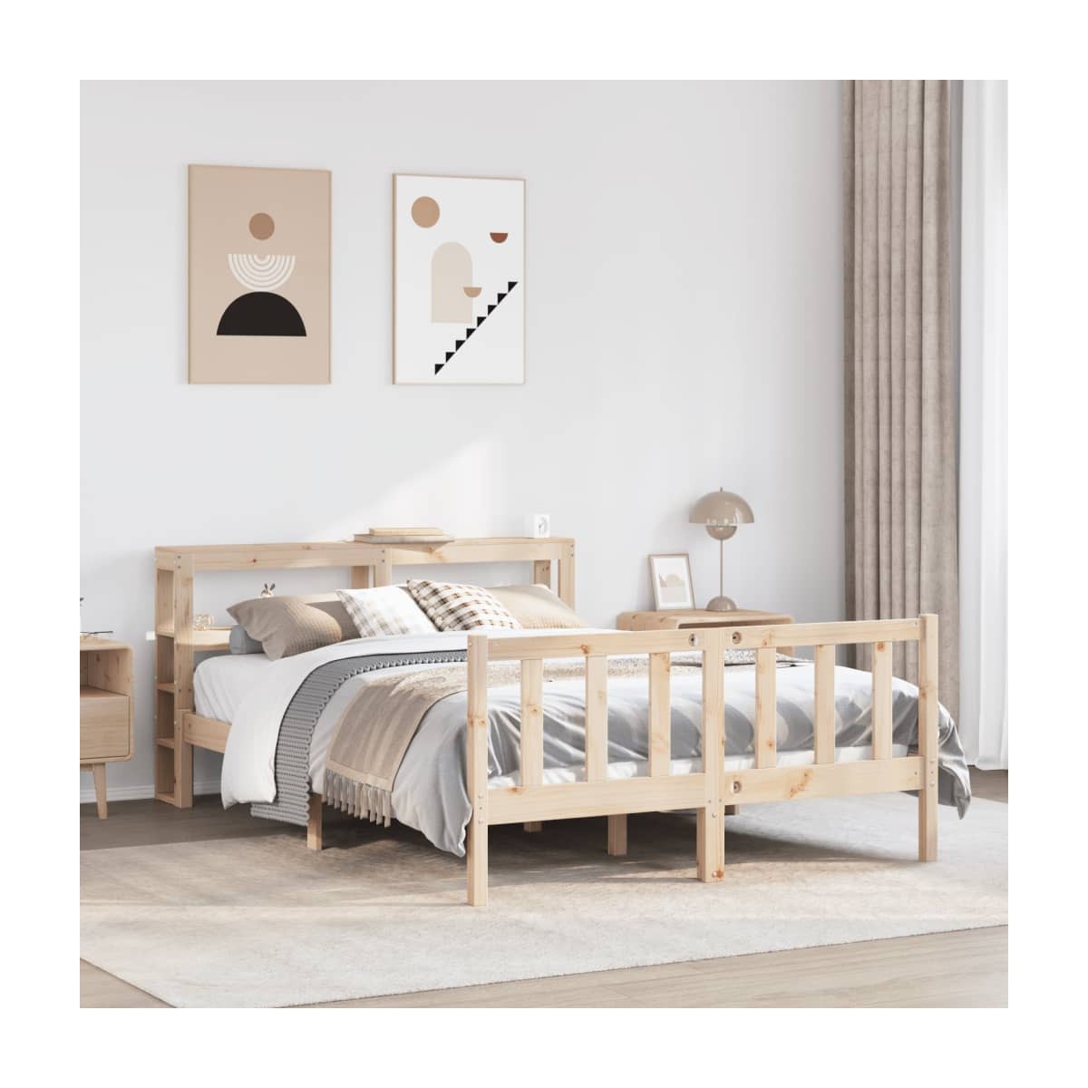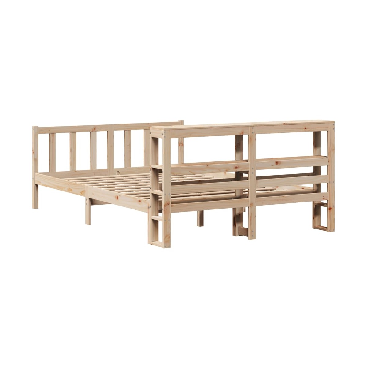 ¡Disfruta de una buena noche de sueño en esta estructura de cama de madera! Es un aporte práctico y decorativo para la casa. Madera de pino maciza: La madera de pino maciza es un bonito material natural. La madera de pino tiene vetas rectas, y los nudos dan al material su distintivo aspecto rústico.Listones de madera contrachapada: Los listones de madera contrachapada ofrecen una buena distribución del peso, lo que garantiza el tan necesario soporte y la transpirabilidad del colchón.Amplio espacio de almacenamiento: Este elegante cabecero de la cama cuenta con dos prácticos estantes, que ofrecen un amplio espacio de almacenamiento para tener todos tus artículos esenciales para la noche al alcance de la mano.Cabecero independiente: El cabecero independiente ofrece una solución sin complicaciones para colocarlo y reposicionarlo sin esfuerzo y sin necesidad de instalarlo en la pared. Información útil: El colchón no está incluido con la cama. Disponemos de una variada selección de colchones. Puedes echar un vistazo a nuestra tienda para buscar el colchón correspondiente.