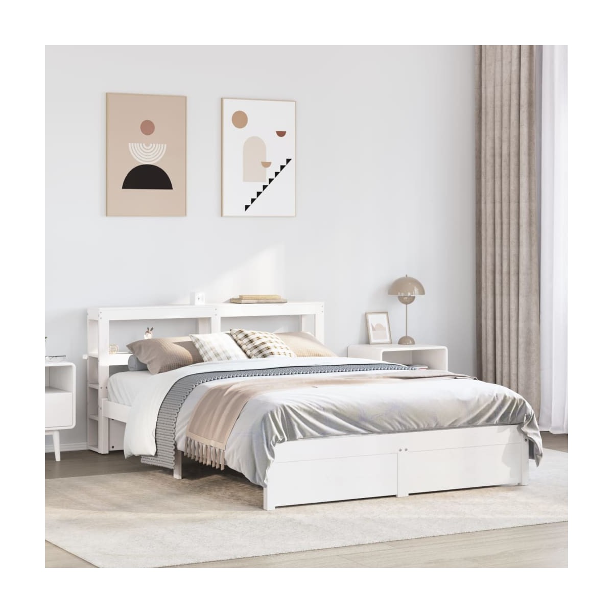 ¡Disfruta de una buena noche de sueño en esta estructura de cama de madera! Es un aporte práctico y decorativo para la casa. Madera de pino maciza: La madera de pino maciza es un bonito material natural. La madera de pino tiene vetas rectas, y los nudos dan al material su distintivo aspecto rústico.Estructura de cama resistente: La estructura de madera garantiza su solidez y estabilidad. Los listones de madera contrachapada proporcionan una buena distribución del peso, lo que garantiza que el colchón se mantenga en su sitio con cada giro y vuelta del cuerpo mientras duermes.Cabecero versátil: Esta estructura de cama viene con un cabecero que proporciona un excelente soporte para la espalda cuando te sientas en la cama para leer o ver la televisión, a la vez que sirve como elemento decorativo.Amplio espacio de almacenamiento: Este elegante cabecero cuenta con dos prácticos estantes, que ofrecen un amplio espacio de almacenamiento para tener todos tus artículos esenciales para la noche al alcance de la mano. Información útil:El colchón no está incluido con la cama. Disponemos de una variada selección de colchones. Puedes echar un vistazo a nuestra tienda para buscar el colchón correspondiente.