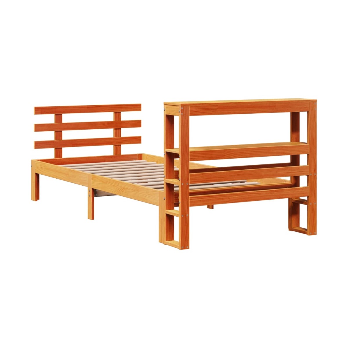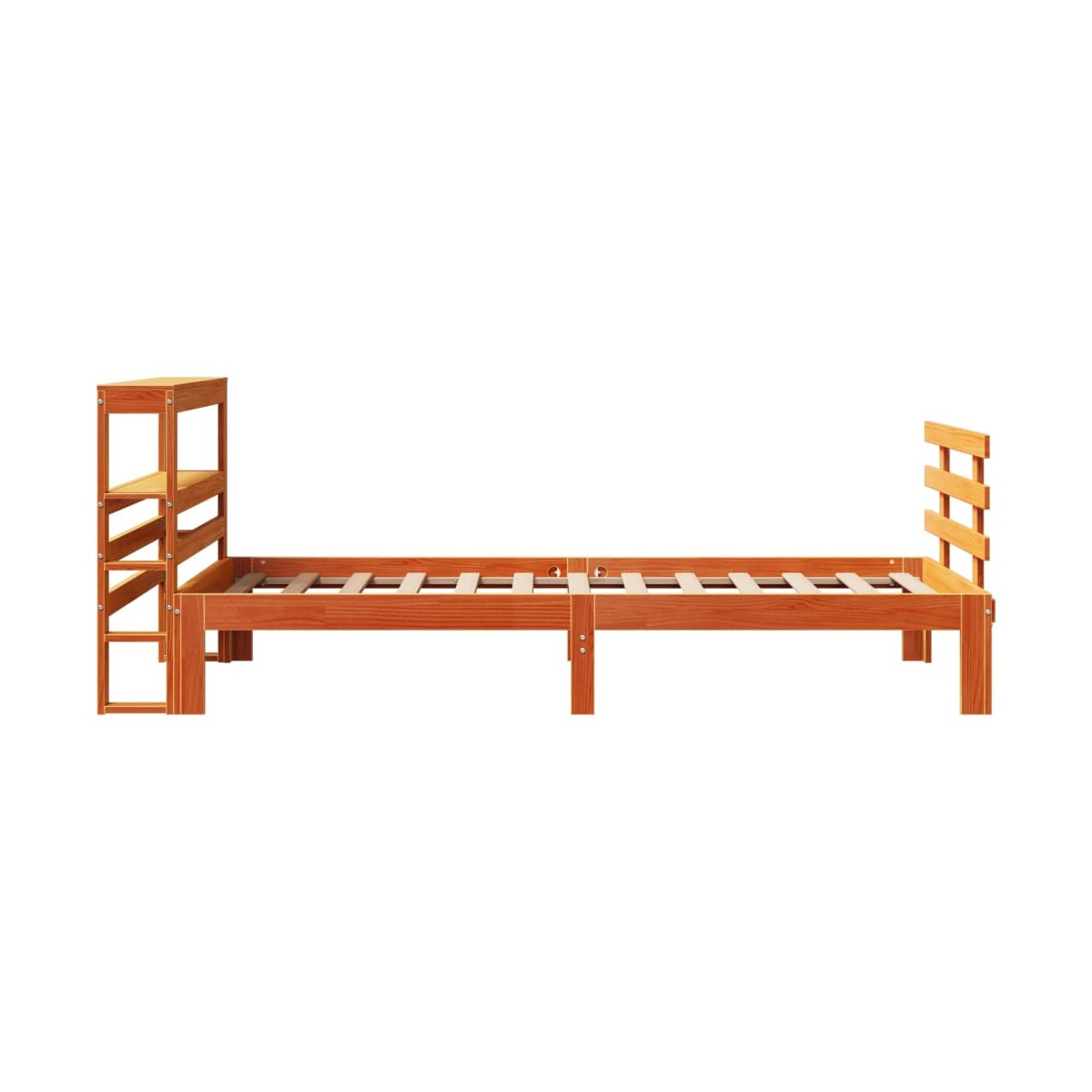 ¡Disfruta de una buena noche de sueño en esta estructura de cama de madera! Es un aporte práctico y decorativo para la casa. Madera de pino maciza: La madera de pino maciza es un bonito material natural. La madera de pino tiene vetas rectas, y los nudos dan al material su distintivo aspecto rústico.Estructura de cama resistente: La estructura de madera garantiza su solidez y estabilidad. Los listones de madera contrachapada proporcionan una buena distribución del peso, lo que garantiza que el colchón se mantenga en su sitio con cada giro y vuelta del cuerpo mientras duermes.Cabecero y estribo de cama útiles: El cabecero y el estribo de la cama de madera mantienen el colchón en su lugar. Además, la cabecera te brinda un excelente soporte para la espalda mientras estás sentado leyendo o mirando la televisión.Amplio espacio de almacenamiento: Este elegante cabecero cuenta con dos prácticos estantes, que ofrecen un amplio espacio de almacenamiento para tener todos tus artículos esenciales para la noche al alcance de la mano. Información útil:El colchón no está incluido con la cama. Disponemos de una variada selección de colchones. Puedes echar un vistazo a nuestra tienda para buscar el colchón correspondiente.