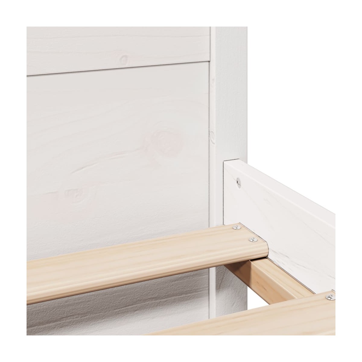 ¡Disfruta de una buena noche de sueño en esta estructura de cama de madera! Es un aporte práctico y decorativo para la casa. Madera de pino maciza: La madera de pino maciza es un bonito material natural. La madera de pino tiene vetas rectas, y los nudos dan al material su distintivo aspecto rústico.Estructura de cama resistente: La estructura de madera garantiza su solidez y estabilidad. Los listones de madera contrachapada proporcionan una buena distribución del peso, lo que garantiza que el colchón se mantenga en su sitio con cada giro y vuelta del cuerpo mientras duermes.Cabecero y estribo de cama útiles: El cabecero y el estribo de la cama de madera mantienen el colchón en su lugar. Además, la cabecera te brinda un excelente soporte para la espalda mientras estás sentado leyendo o mirando la televisión.Amplio espacio de almacenamiento: Este elegante cabecero cuenta con dos prácticos estantes, que ofrecen un amplio espacio de almacenamiento para tener todos tus artículos esenciales para la noche al alcance de la mano. Información útil:El colchón no está incluido con la cama. Disponemos de una variada selección de colchones. Puedes echar un vistazo a nuestra tienda para buscar el colchón correspondiente.