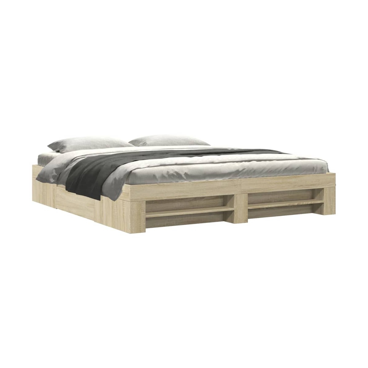 Consigue un sueño más reparador con esta estructura de cama. Es un aporte acogedor para cualquier dormitorio. Material duradero: La estructura de la cama está hecha de madera de ingeniería. La madera de ingeniería tiene una calidad excepcional, con una superficie lisa y también con fuerza, estabilidad y resistencia a la humedad.Somier de láminas para un soporte óptimo: La estructura de cama está equipada con un somier de láminas para el apoyo y la transpirabilidad del colchón.Función de almacenamiento: Este somier ofrece cajones y compartimentos abiertos para mantener tus revistas, libros, juguetes y otros objetos pequeños bien organizados. Información útil:El colchón no está incluido con la cama. Disponemos de una variada selección de colchones. Puedes echar un vistazo a nuestra tienda para buscar el colchón correspondiente.