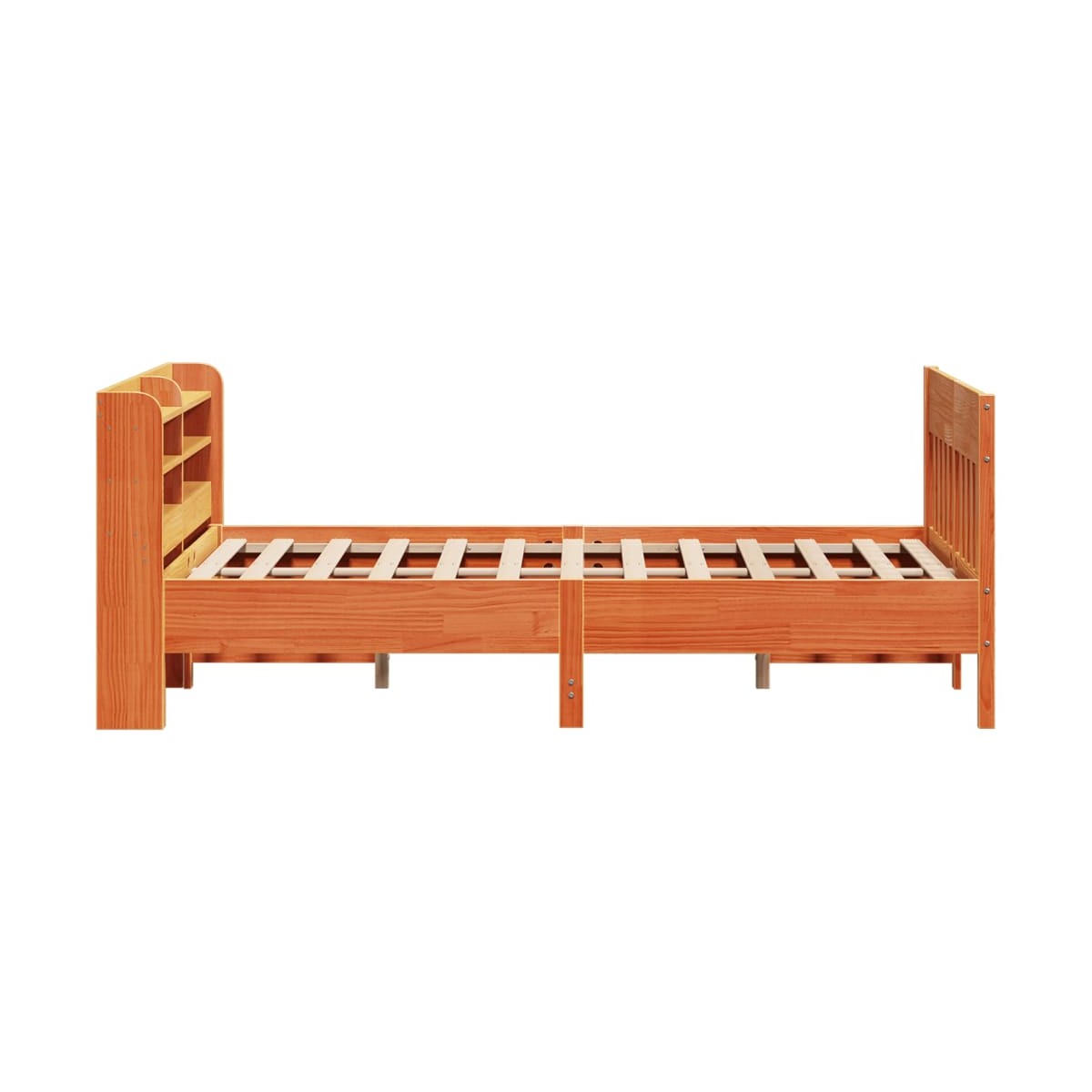 Consigue un sueño más reparador con esta estructura de cama. Es un aporte acogedor para cualquier dormitorio. Estructura estable y duradera: La madera de pino maciza es conocida por su resistencia y durabilidad. Sus vetas rectas y sus característicos nudos contribuyen a su encanto rústico.Somier de láminas para un soporte óptimo: La estructura de cama está equipada con un somier de láminas para el apoyo y la transpirabilidad del colchón.Cabecero versátil: Esta estructura de cama viene con un cabecero que proporciona un excelente soporte para la espalda cuando te sientas en la cama para leer o ver la televisión, a la vez que sirve como elemento decorativo.Amplio espacio de almacenamiento: Este elegante cabecero cuenta con tres prácticos estantes, que ofrecen un amplio espacio de almacenamiento para mantener todos tus objetos esenciales nocturnos al alcance de la mano. Información útil:El colchón no está incluido con la cama. Disponemos de una variada selección de colchones. Puedes echar un vistazo a nuestra tienda para buscar el colchón correspondiente.