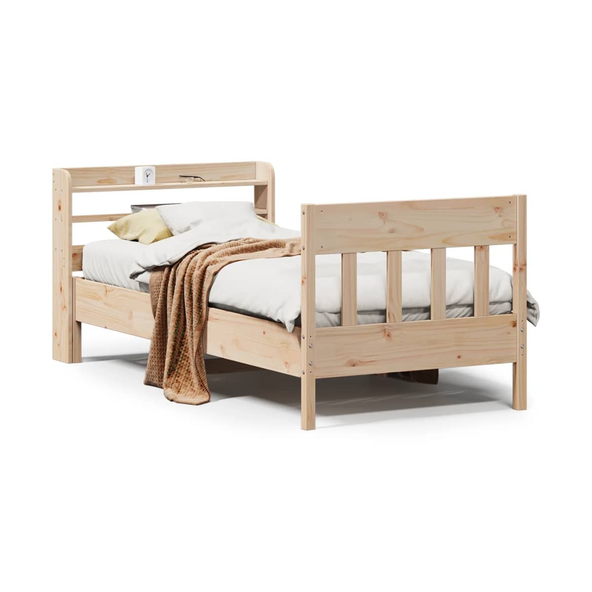 Consigue un sueño más reparador con esta estructura de cama. Es un aporte acogedor para cualquier dormitorio. Estructura estable y duradera: La madera de pino maciza es conocida por su resistencia y durabilidad. Sus vetas rectas y sus característicos nudos contribuyen a su encanto rústico.Somier de láminas para un soporte óptimo: La estructura de cama está equipada con un somier de láminas para el apoyo y la transpirabilidad del colchón.Cabecero versátil: Esta estructura de cama viene con un cabecero que proporciona un excelente soporte para la espalda cuando te sientas en la cama para leer o ver la televisión, a la vez que sirve como elemento decorativo.Amplio espacio de almacenamiento: Este elegante cabecero cuenta con tres prácticos estantes, que ofrecen un amplio espacio de almacenamiento para mantener todos tus objetos esenciales nocturnos al alcance de la mano. Información útil:El colchón no está incluido con la cama. Disponemos de una variada selección de colchones. Puedes echar un vistazo a nuestra tienda para buscar el colchón correspondiente.