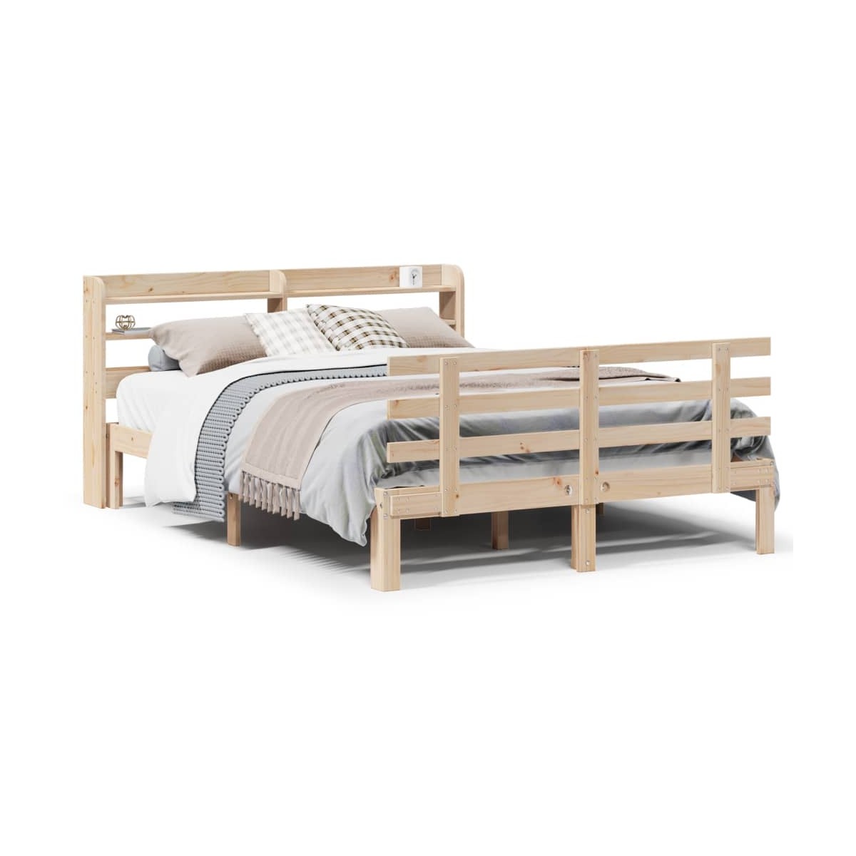¡Disfruta de una buena noche de sueño en esta estructura de cama de madera! Es un aporte práctico y decorativo para la casa. Madera de pino maciza: La madera de pino maciza es un bonito material natural. La madera de pino tiene vetas rectas, y los nudos dan al material su distintivo aspecto rústico.Estructura de cama resistente: La estructura de madera garantiza su solidez y estabilidad. Los listones de madera contrachapada proporcionan una buena distribución del peso, lo que garantiza que el colchón se mantenga en su sitio con cada giro y vuelta del cuerpo mientras duermes.Cabecero y estribo de cama útiles: El cabecero y el estribo de la cama de madera mantienen el colchón en su lugar. Además, la cabecera te brinda un excelente soporte para la espalda mientras estás sentado leyendo o mirando la televisión.Amplio espacio de almacenamiento: Este elegante cabecero cuenta con dos prácticos estantes, que ofrecen un amplio espacio de almacenamiento para tener todos tus artículos esenciales para la noche al alcance de la mano. Información útil:El colchón no está incluido con la cama. Disponemos de una variada selección de colchones. Puedes echar un vistazo a nuestra tienda para buscar el colchón correspondiente.