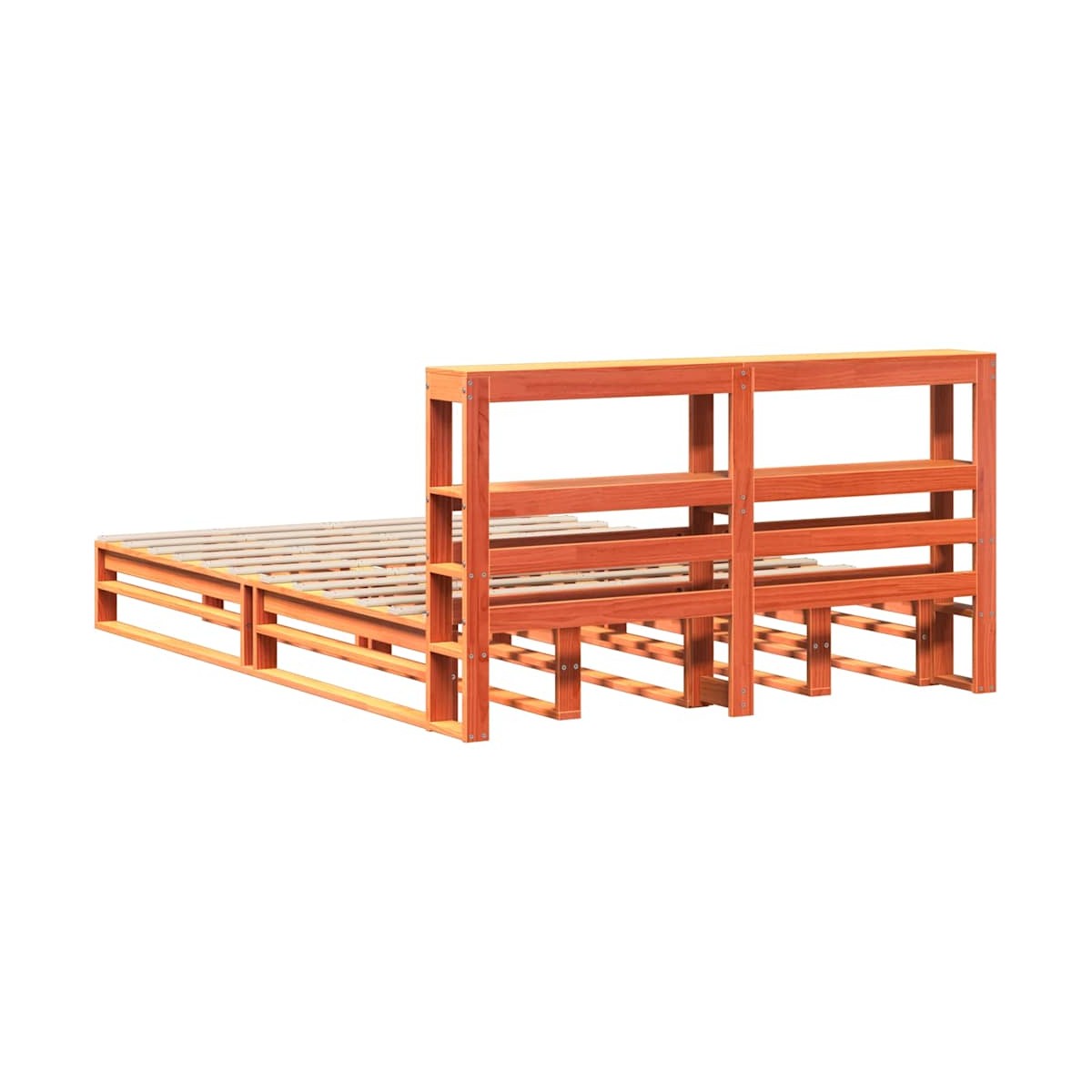 ¡Disfruta de una buena noche de sueño en esta estructura de cama de madera! Es un aporte práctico y decorativo para la casa. Estructura estable y duradera: La madera de pino maciza es conocida por su resistencia y durabilidad. Sus vetas rectas y sus característicos nudos contribuyen a su encanto rústico.Amplio espacio de almacenamiento: Este elegante cabecero cuenta con prácticos estantes, que ofrecen un amplio espacio de almacenamiento para mantener todos tus objetos esenciales nocturnos al alcance de la mano.Cabecero versátil: Esta estructura de cama de matrimonio viene con un cabecero que proporciona un excelente soporte para la espalda cuando te sientas en la cama para leer o ver la televisión, a la vez que sirve como elemento decorativo.Somier de láminas para un soporte óptimo: El base de cama está equipado con un somier de láminas para el apoyo y la transpirabilidad del colchón. Información útil:El colchón no está incluido con la cama. Disponemos de una variada selección de colchones. Puedes echar un vistazo a nuestra tienda para buscar el colchón correspondiente.