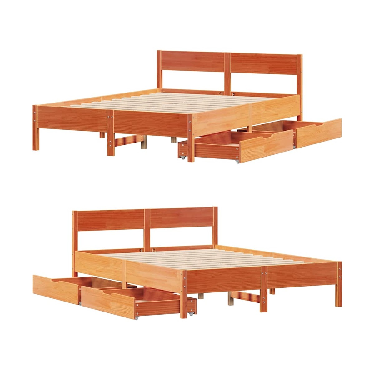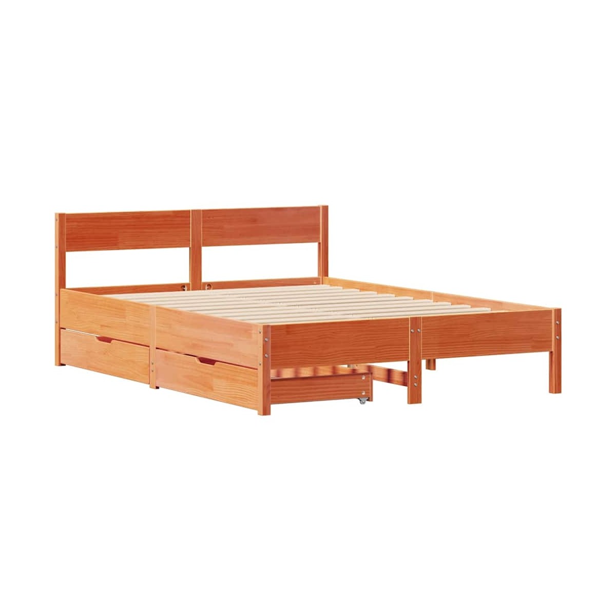 Consigue un sueño más reparador con esta estructura de cama. Es un aporte acogedor para cualquier dormitorio. Estructura estable y duradera: La madera de pino maciza es conocida por su resistencia y durabilidad. Sus vetas rectas y sus característicos nudos contribuyen a su encanto rústico.Somier de láminas para un soporte óptimo: La estructura de cama está equipada con un somier de láminas para el apoyo y la transpirabilidad del colchón.Cabecero versátil: Esta estructura de cama viene con un cabecero que proporciona un excelente soporte para la espalda cuando te sientas en la cama para leer o ver la televisión, a la vez que sirve como elemento decorativo.Aproveche al máximo el espacio: Este somier cuenta con dos cajones debajo, que proporcionan almacenamiento para artículos como ropa de cama extra, ropa de temporada y juguetes.Maniobrabilidad sin esfuerzo: Este cajón de almacenamiento bajo la cama cuenta con cuatro ruedas, que proporcionan una maniobrabilidad suave y sin esfuerzo para deslizarse dentro y fuera de debajo de tu cama. Información útil:El colchón no está incluido con la cama. Disponemos de una variada selección de colchones. Puedes echar un vistazo a nuestra tienda para buscar el colchón correspondiente.
