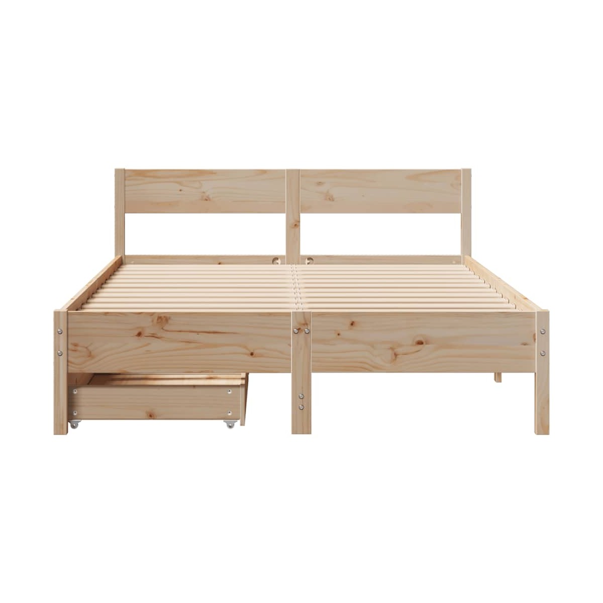 Consigue un sueño más reparador con esta estructura de cama. Es un aporte acogedor para cualquier dormitorio. Estructura estable y duradera: La madera de pino maciza es conocida por su resistencia y durabilidad. Sus vetas rectas y sus característicos nudos contribuyen a su encanto rústico.Somier de láminas para un soporte óptimo: La estructura de cama está equipada con un somier de láminas para el apoyo y la transpirabilidad del colchón.Cabecero versátil: Esta estructura de cama viene con un cabecero que proporciona un excelente soporte para la espalda cuando te sientas en la cama para leer o ver la televisión, a la vez que sirve como elemento decorativo.Aproveche al máximo el espacio: Este somier cuenta con dos cajones debajo, que proporcionan almacenamiento para artículos como ropa de cama extra, ropa de temporada y juguetes.Maniobrabilidad sin esfuerzo: Este cajón de almacenamiento bajo la cama cuenta con cuatro ruedas, que proporcionan una maniobrabilidad suave y sin esfuerzo para deslizarse dentro y fuera de debajo de tu cama. Información útil:El colchón no está incluido con la cama. Disponemos de una variada selección de colchones. Puedes echar un vistazo a nuestra tienda para buscar el colchón correspondiente.