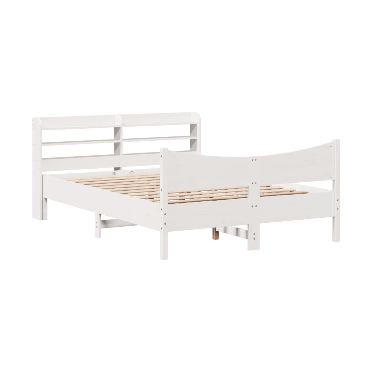 Consigue un sueño más reparador con esta estructura de cama. Es un aporte acogedor para cualquier dormitorio. Estructura estable y duradera: La madera de pino maciza es conocida por su resistencia y durabilidad. Sus vetas rectas y sus característicos nudos contribuyen a su encanto rústico.Somier de láminas para un soporte óptimo: La estructura de cama está equipada con un somier de láminas para el apoyo y la transpirabilidad del colchón.Amplio espacio de almacenamiento: Este elegante cabecero cuenta con tres prácticos estantes, que ofrecen un amplio espacio de almacenamiento para mantener todos tus objetos esenciales nocturnos al alcance de la mano.Cabecero independiente: El cabecero independiente ofrece una solución sin complicaciones para colocarlo y reposicionarlo sin esfuerzo y sin necesidad de instalarlo en la pared. Información útil:El colchón no está incluido con la cama. Disponemos de una variada selección de colchones. Puedes echar un vistazo a nuestra tienda para buscar el colchón correspondiente.