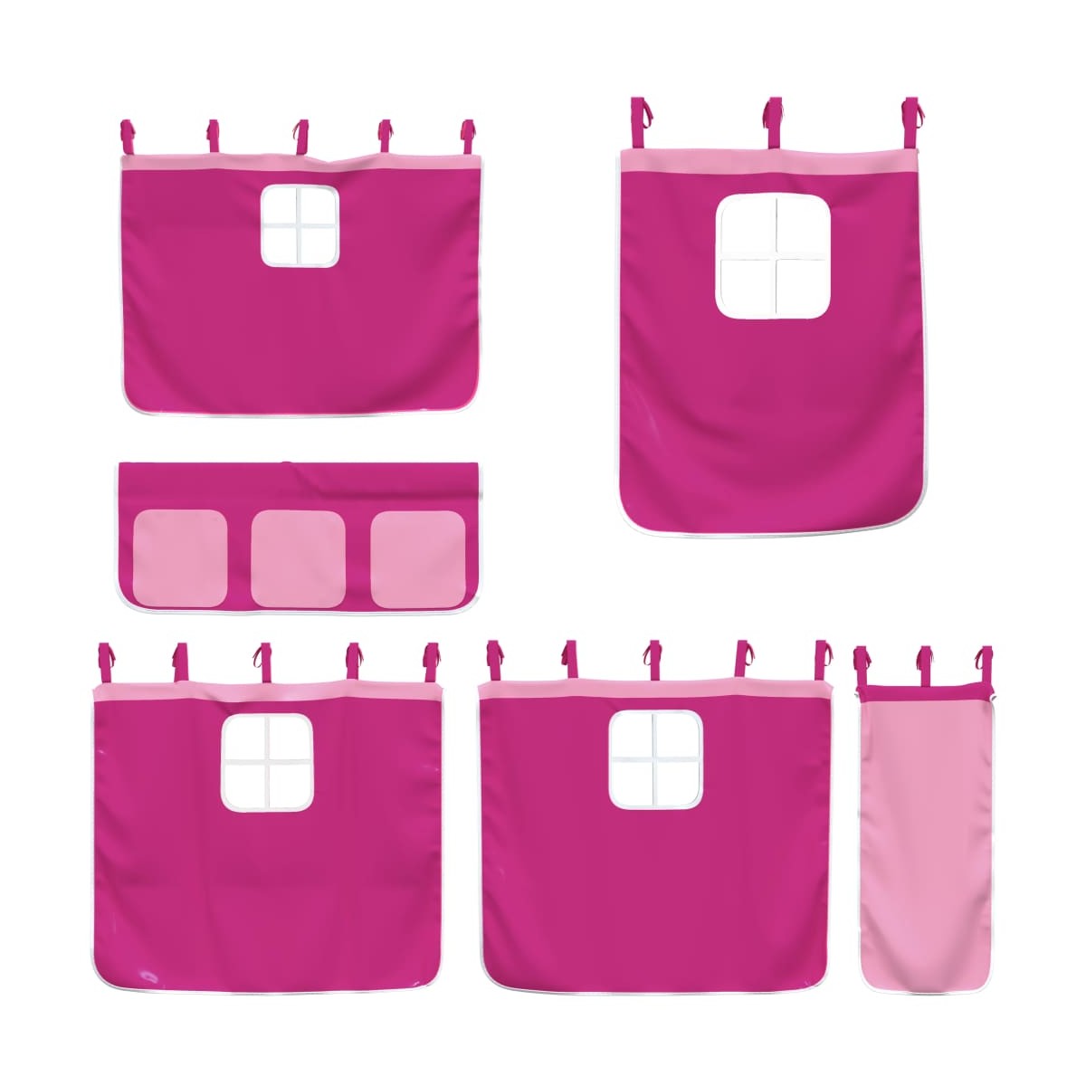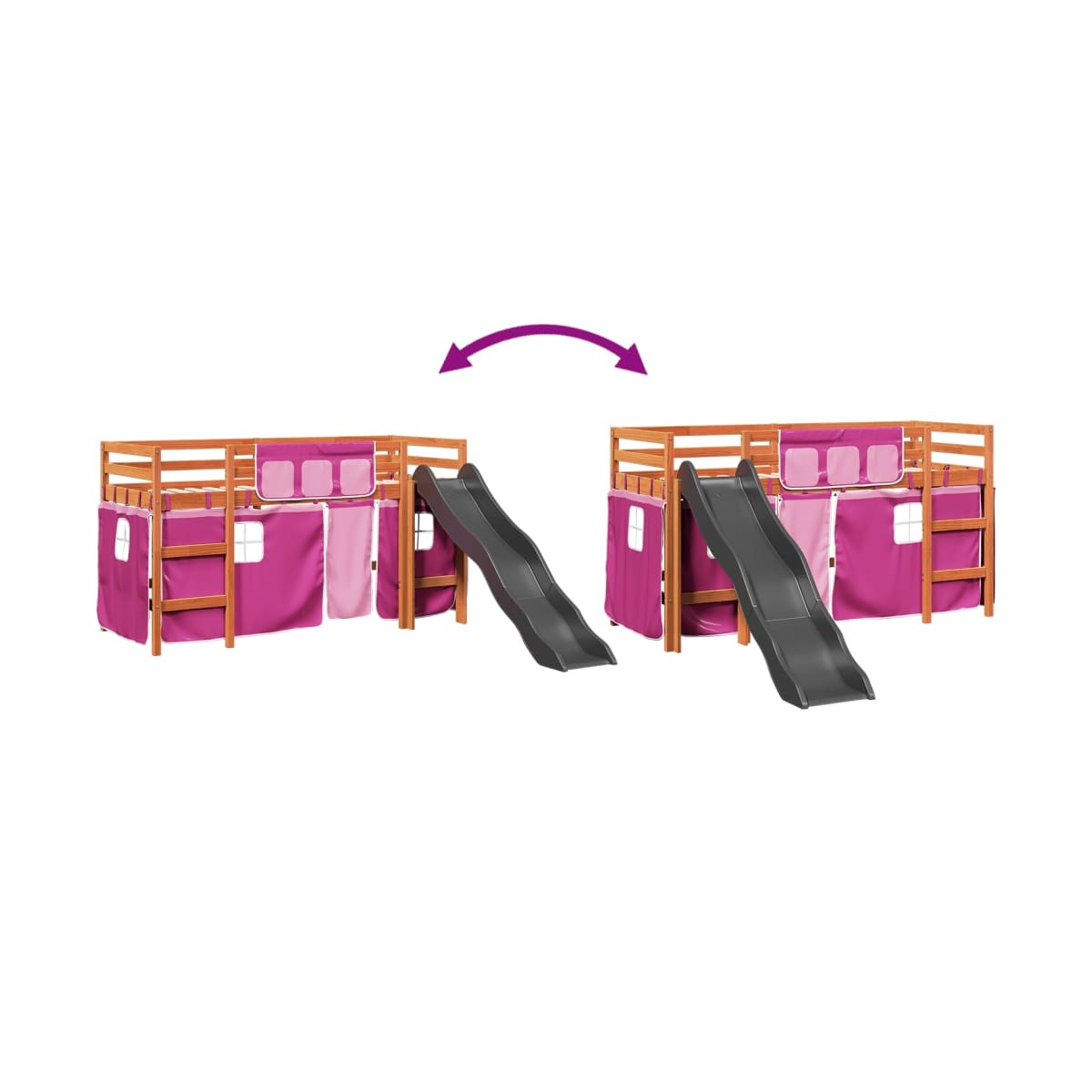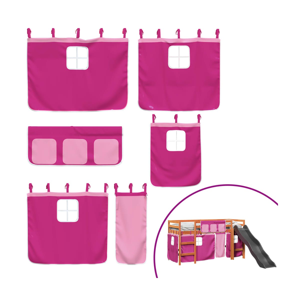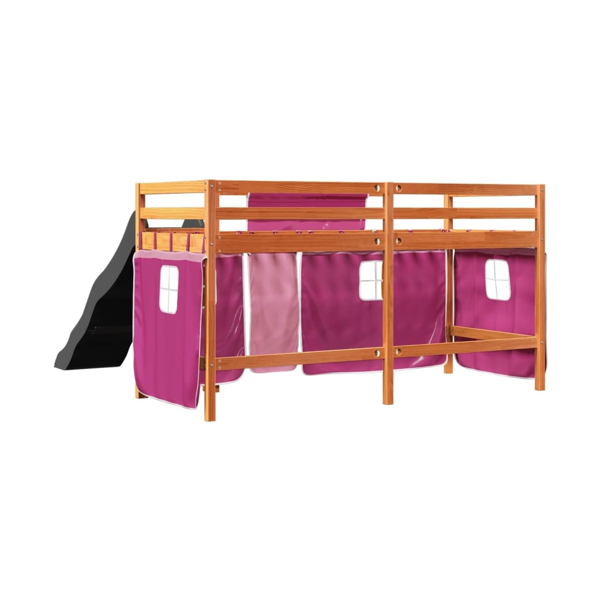 Esta cama alta para niños está hecha de madera maciza de pino y diseñada para entretener además de optimizar el espacio. Estructura estable y duradera: La madera de pino maciza es conocida por su resistencia y durabilidad. Sus vetas rectas y sus característicos nudos contribuyen a su encanto rústico.Mucha diversión: Puedes combinar las cortinas con la estructura de la cama alta para crear la base secreta para tu hijo. ¡La hora de dormir será un juego y la cama será el centro de atención del dormitorio!Barandillas de seguridad: La cama alta individual viene con barandillas de seguridad en los 4 lados, para que tu hijo pueda dormir sin preocuparte de que se caiga.Práctica escalera y tobogán: Esta cama nido infantil tiene un divertido tobogán que convierte la habitación en un parque dentro de casa. La combinación de una escalera para trepar y un tobogán hace que la hora de dormir resulte más animada y emocionante para los niños. Somier de láminas para un soporte óptimo: La estructura de cama está equipada con un somier de láminas para el apoyo y la transpirabilidad del colchón. Información útil:El colchón no está incluido con la cama. Disponemos de una variada selección de colchones. Puedes echar un vistazo a nuestra tienda para buscar el colchón correspondiente. Advertencia:Para evitar que vuelque, este producto debe usarse con el dispositivo de fijación a la pared suministrado.