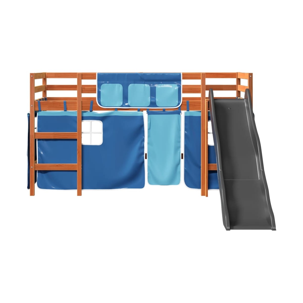 Esta cama alta para niños está hecha de madera maciza de pino y diseñada para entretener además de optimizar el espacio. Estructura estable y duradera: La madera de pino maciza es conocida por su resistencia y durabilidad. Sus vetas rectas y sus característicos nudos contribuyen a su encanto rústico.Mucha diversión: Puedes combinar las cortinas con la estructura de la cama alta para crear la base secreta para tu hijo. ¡La hora de dormir será un juego y la cama será el centro de atención del dormitorio!Barandillas de seguridad: La cama alta individual viene con barandillas de seguridad en los 4 lados, para que tu hijo pueda dormir sin preocuparte de que se caiga.Práctica escalera y tobogán: Esta cama nido infantil tiene un divertido tobogán que convierte la habitación en un parque dentro de casa. La combinación de una escalera para trepar y un tobogán hace que la hora de dormir resulte más animada y emocionante para los niños. Somier de láminas para un soporte óptimo: La estructura de cama está equipada con un somier de láminas para el apoyo y la transpirabilidad del colchón. Información útil:El colchón no está incluido con la cama. Disponemos de una variada selección de colchones. Puedes echar un vistazo a nuestra tienda para buscar el colchón correspondiente. Advertencia:Para evitar que vuelque, este producto debe usarse con el dispositivo de fijación a la pared suministrado.