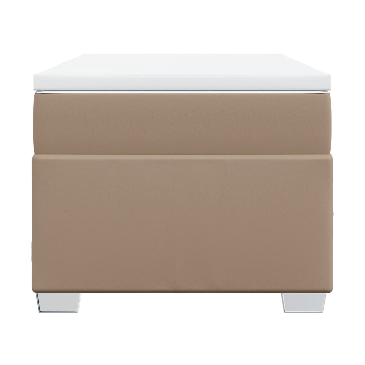 Utiliza esta cama de muelles para disfrutar de un sueño reparador. Te ofrece la máxima relajación y un sueño placentero. Material duradero: El cuero sintético de primera calidad es un material muy duradero. Es resistente a las manchas, por lo que es fácil de limpiar con un paño húmedo. Además, la superficie lisa da un aspecto lujoso y la belleza del cuero auténtico.Colchón de muelles ensacados: Este colchón de muelles ensacados cuenta con muelles ensacados individuales que funcionan de forma independiente para proporcionar un apoyo personalizado reaccionando únicamente a la presión de cada zona. Este diseño evita que se enrolle y reduce la transferencia de movimiento en comparación con los colchones tradicionales de bobina abierta. Cada muelle ensacado sostiene el cuerpo individualmente.Cubrecolchón cómodo: Este cubrecolchón mejora el soporte y la comodidad con su superficie suave y transpirable al tiempo que prolonga la vida útil de su colchón. Su funda extraíble permite un fácil lavado, lo que facilita el mantenimiento.Listones para un soporte óptimo: El somier se completa con listones para ofrecer un soporte esencial y transpirabilidad a tu colchón.Patas estables y duraderas: Esta cama está sostenida por patas resistentes, lo que garantiza estabilidad, seguridad y firmeza. Información útil:Por razones de higiene, el colchón no puede devolverse si se ha quitado o abierto el embalaje.