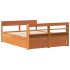Consigue un sueño más reparador con esta estructura de cama. Es un aporte acogedor para cualquier dormitorio. Estructura estable y duradera: La madera de pino maciza es conocida por su resistencia y durabilidad. Sus vetas rectas y sus característicos nudos contribuyen a su encanto rústico.Somier de láminas para un soporte óptimo: La estructura de cama está equipada con un somier de láminas para el apoyo y la transpirabilidad del colchón.Aprovecha al máximo el espacio: Esta estructura de cama cuenta con cuatro cajones debajo, lo que proporciona almacenamiento para artículos como ropa de cama adicional, ropa de temporada y juguetes.Amplio espacio de almacenamiento: Este elegante cabecero de la cama cuenta con tres prácticos estantes, que ofrecen un amplio espacio de almacenamiento para mantener todos tus elementos esenciales de la noche al alcance de la mano.Cabecero independiente: El cabecero independiente ofrece una solución sin complicaciones para colocarlo y reposicionarlo sin esfuerzo y sin necesidad de instalarlo en la pared. Información útil:El colchón no está incluido con la cama. Disponemos de una variada selección de colchones. Puedes echar un vistazo a nuestra tienda para buscar el colchón correspondiente.