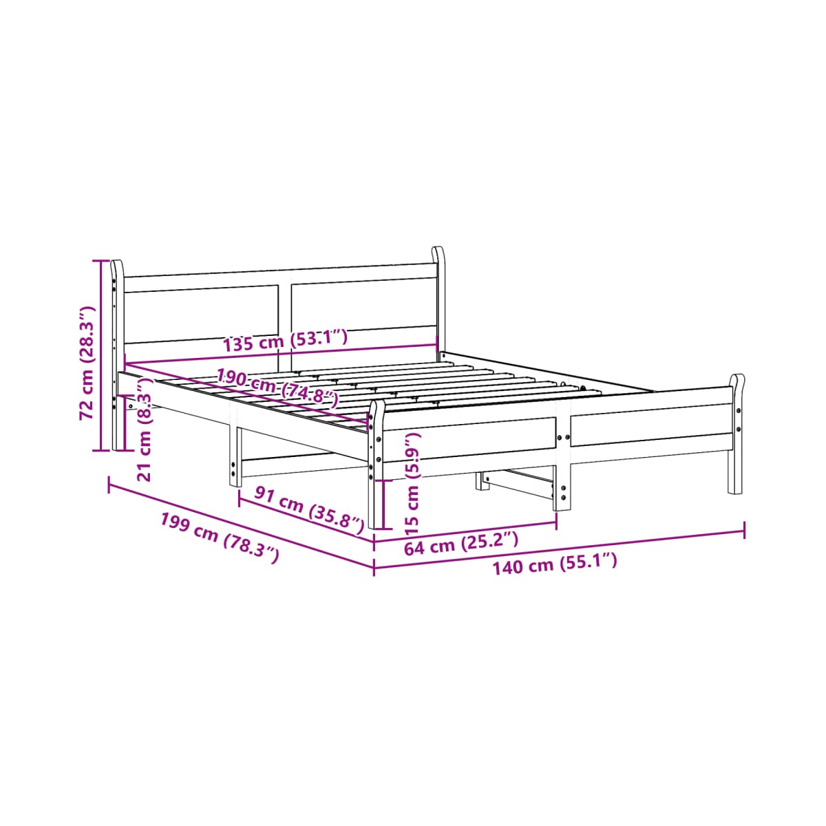 - Dimensiones adecuadas del colchón: 135 x 190 cm (ancho x largo) (colchón no incluido)