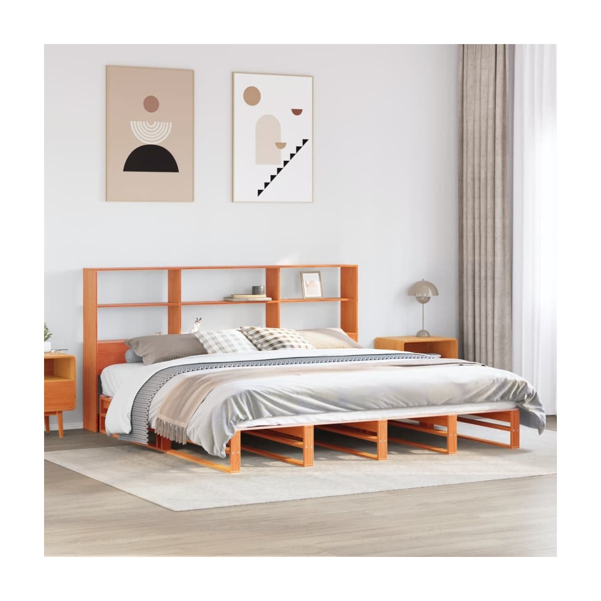 ¡Consigue una mejor noche de sueño reparador con esta cama con estantería! Es un aporte acogedor para cualquier dormitorio. Estructura estable y duradera: La madera de pino maciza es conocida por su resistencia y durabilidad. Sus vetas rectas y sus característicos nudos contribuyen a su encanto rústico. Somier de láminas para un soporte óptimo: La estructura de cama está equipada con un somier de láminas para el apoyo y la transpirabilidad del colchón. Amplio espacio de almacenamiento: El cabecero de estantería ofrece un amplio espacio de almacenamiento para mantener libros, artículos decorativos o pertenencias personales al alcance de la mano, lo que reduce el desorden en el dormitorio. Práctico pie de cama: El pie de cama no solo contribuye a la estabilidad general del marco de la cama, proporcionando un entorno seguro para dormir, sino que también asegura su colchón en su lugar y evita que las mantas, sábanas y otra ropa de cama se caigan del extremo de la cama, manteniendo una apariencia ordenada. Ahorro de espacio: Este cabecero es una opción de ahorro de espacio que puede sustituir la necesidad de una mesilla de noche, ayudando a maximizar el espacio de tu dormitorio, y haciéndolo ideal para espacios pequeños o limitados. Información útil:El colchón no está incluido con la cama. Disponemos de una variada selección de colchones. Puedes echar un vistazo a nuestra tienda para buscar el colchón correspondiente.