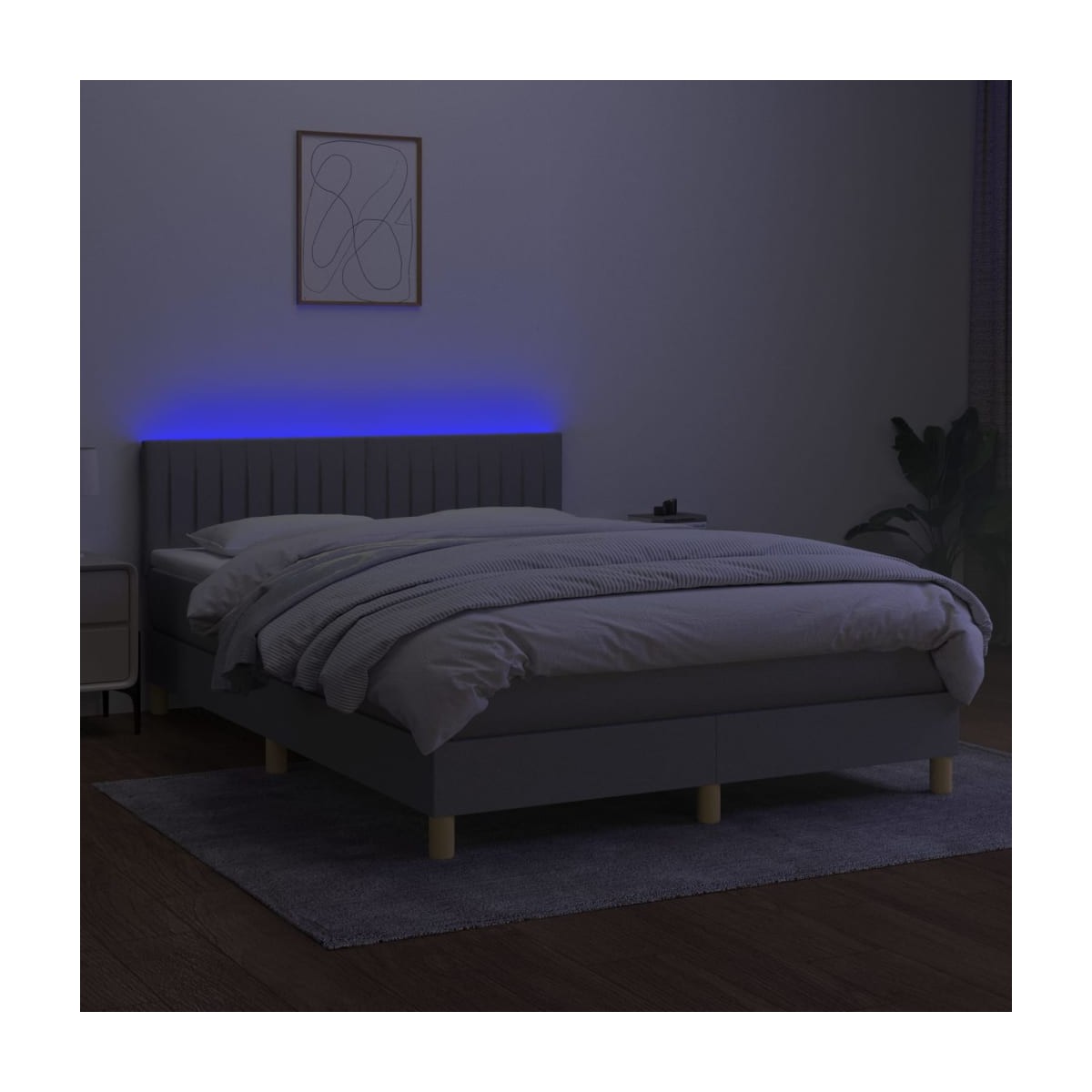 Utiliza esta cama box spring con colchón y LED para disfrutar de un sueño reparador. Es el centro de atención de tu dormitorio. Material de primera calidad: La tela posee un aspecto sencillo y limpio, y es transpirable y duradera.Cabecero práctico: El cabecero de la cama es ajustable en altura según tus preferencias. El cabecero de la cama te proporciona un excelente apoyo para la espalda mientras estás sentado en la cama para leer o ver la televisión.Tira de LED de colores: Alegra la oscuridad con luces LED de colores.Colchón de muelles ensacados: El muelle ensacado individual incorporado es conocido por su altísima calidad, al tiempo que garantiza un alto nivel de durabilidad y adaptabilidad. Puede absorber eficazmente el ruido y los golpes causados por los lanzamientos y los giros.Protector de colchón respetuoso con la piel: El protector de colchón tiene una funda de tejido resistente y respetuoso con la piel, que lo hace suave y confortable. Nota:Por razones de higiene, el colchón no puede devolverse si se ha quitado o abierto el embalaje.Cada producto viene con un manual de montaje en la caja para facilitar el montaje.Únicamente puedes cortar por la parte con el símbolo de las tijeras y únicamente la parte con el USB seguirá funcionando como antes.El producto tiene un conector USB, pero no se incluye la fuente de alimentación USB de 5 V certificada.