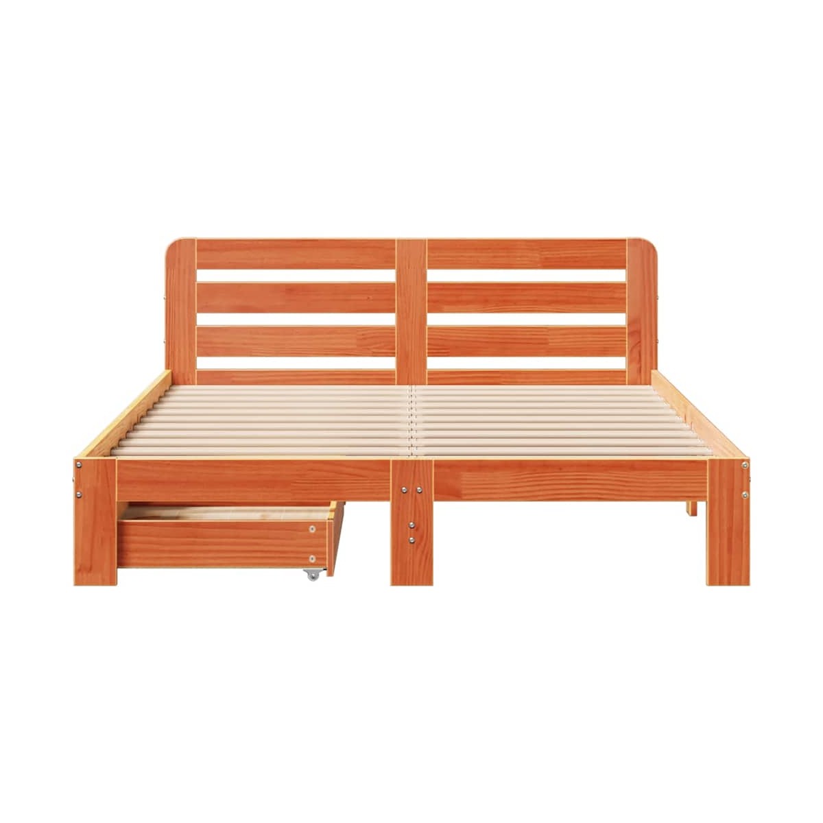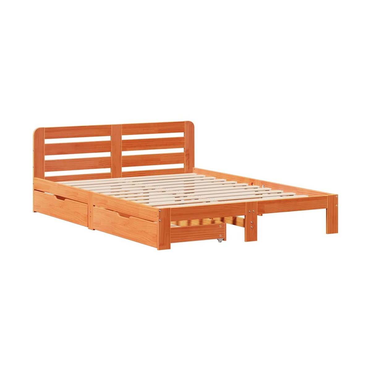 Consigue un sueño más reparador con esta estructura de cama. Es un aporte acogedor para cualquier dormitorio. Estructura estable y duradera: La madera de pino maciza es conocida por su resistencia y durabilidad. Sus vetas rectas y sus característicos nudos contribuyen a su encanto rústico.Somier de láminas para un soporte óptimo: El base de cama está equipado con un somier de láminas para el apoyo y la transpirabilidad del colchón.Maniobrabilidad sin esfuerzo: Este cajón de almacenamiento bajo la cama cuenta con cuatro ruedas, que proporcionan una maniobrabilidad suave y sin esfuerzo para deslizarse dentro y fuera de debajo de tu cama.Patas estables y duraderas: Este somier está sostenido por patas resistentes, lo que garantiza estabilidad, seguridad y firmeza.Cabecero versátil: Esta cama de paneles viene con un cabecero que proporciona un excelente soporte para la espalda cuando te sientas en la cama para leer o ver la televisión, a la vez que sirve como elemento decorativo. Información útil:El colchón no está incluido con la cama. Disponemos de una variada selección de colchones. Puedes echar un vistazo a nuestra tienda para buscar el colchón correspondiente.