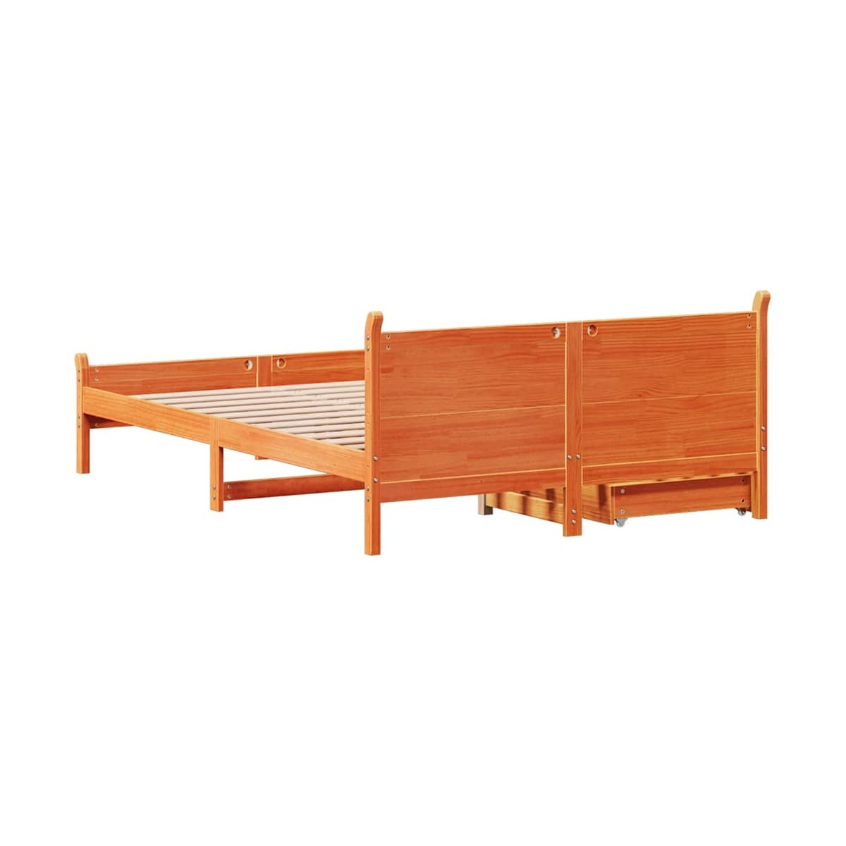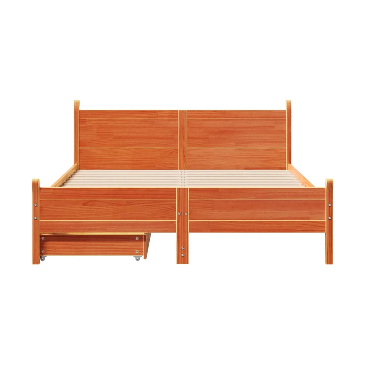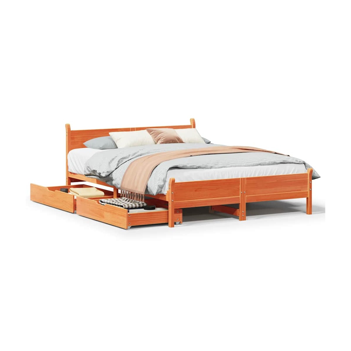 Consigue un sueño más reparador con esta estructura de cama. Es un aporte acogedor para cualquier dormitorio. Estructura estable y duradera: La madera de pino maciza es conocida por su resistencia y durabilidad. Sus vetas rectas y sus característicos nudos contribuyen a su encanto rústico.Somier de láminas para un soporte óptimo: El base de cama está equipado con un somier de láminas para el apoyo y la transpirabilidad del colchón.Maniobrabilidad sin esfuerzo: Este cajón de almacenamiento bajo la cama cuenta con cuatro ruedas, que proporcionan una maniobrabilidad suave y sin esfuerzo para deslizarse dentro y fuera de debajo de tu cama.Patas estables y duraderas: Este somier está sostenido por patas resistentes, lo que garantiza estabilidad, seguridad y firmeza.Cabecero versátil: Esta cama de paneles viene con un cabecero que proporciona un excelente soporte para la espalda cuando te sientas en la cama para leer o ver la televisión, a la vez que sirve como elemento decorativo. Información útil:El colchón no está incluido con la cama. Disponemos de una variada selección de colchones. Puedes echar un vistazo a nuestra tienda para buscar el colchón correspondiente.