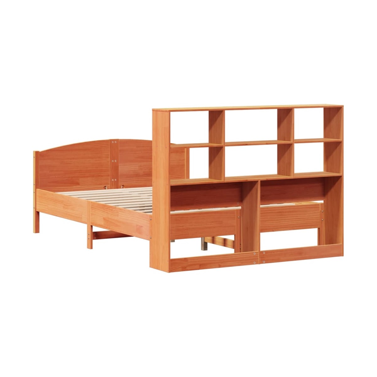 ¡Consigue una mejor noche de sueño reparador con esta cama con estantería! Es un aporte acogedor para cualquier dormitorio. Estructura estable y duradera: La madera de pino maciza es conocida por su resistencia y durabilidad. Sus vetas rectas y sus característicos nudos contribuyen a su encanto rústico. Somier de láminas para un soporte óptimo: La estructura de cama está equipada con un somier de láminas para el apoyo y la transpirabilidad del colchón. Amplio espacio de almacenamiento: El cabecero de estantería ofrece un amplio espacio de almacenamiento para mantener libros, artículos decorativos o pertenencias personales al alcance de la mano, lo que reduce el desorden en el dormitorio. Práctico pie de cama: El pie de cama no solo contribuye a la estabilidad general del marco de la cama, proporcionando un entorno seguro para dormir, sino que también asegura su colchón en su lugar y evita que las mantas, sábanas y otra ropa de cama se caigan del extremo de la cama, manteniendo una apariencia ordenada. Ahorro de espacio: Este cabecero es una opción de ahorro de espacio que puede sustituir la necesidad de una mesilla de noche, ayudando a maximizar el espacio de tu dormitorio, y haciéndolo ideal para espacios pequeños o limitados. Información útil:El colchón no está incluido con la cama. Disponemos de una variada selección de colchones. Puedes echar un vistazo a nuestra tienda para buscar el colchón correspondiente.