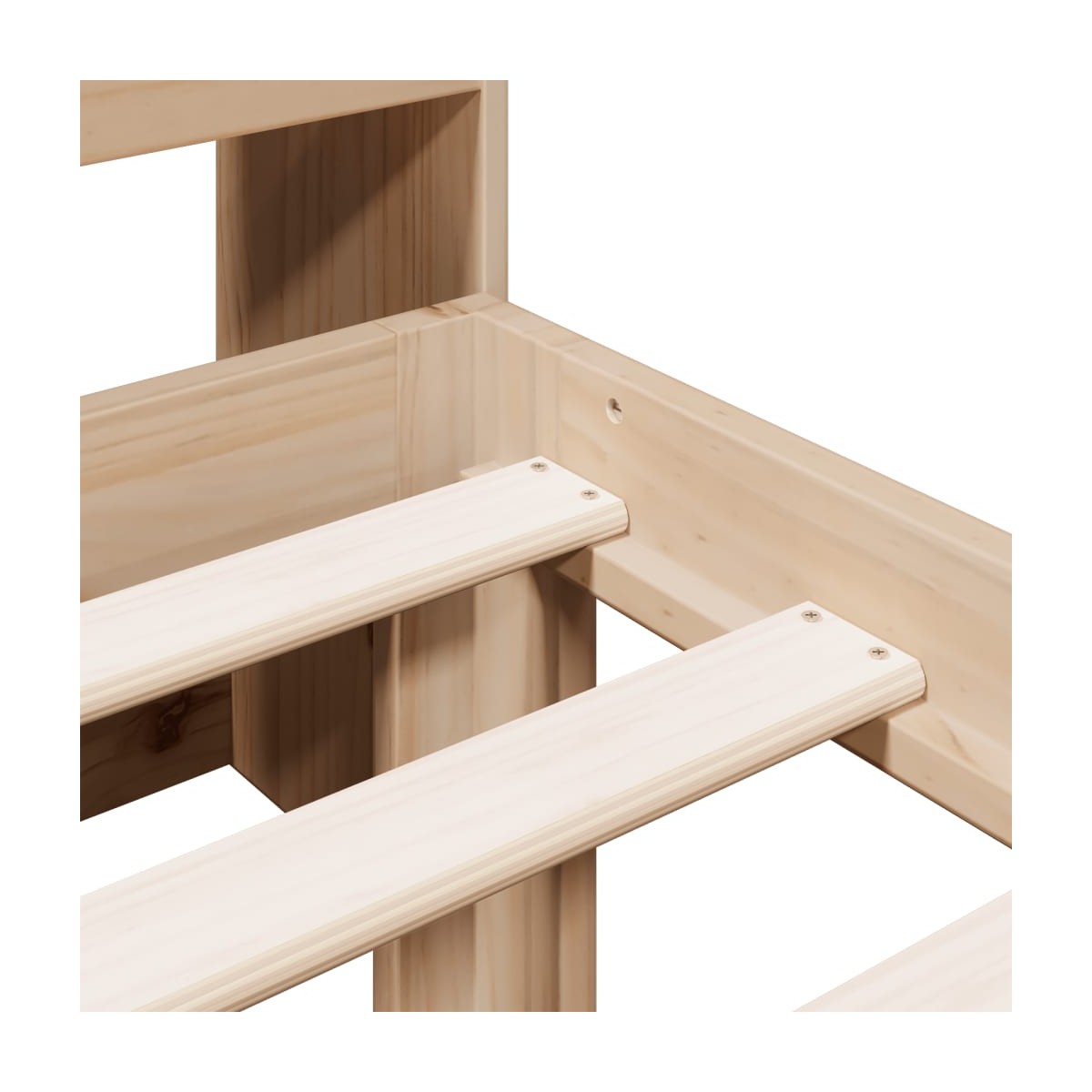 ¡Consigue una mejor noche de sueño reparador con esta cama con estantería! Es un aporte acogedor para cualquier dormitorio. Estructura estable y duradera: La madera de pino maciza es conocida por su resistencia y durabilidad. Sus vetas rectas y sus característicos nudos contribuyen a su encanto rústico. Somier de láminas para un soporte óptimo: La estructura de cama está equipada con un somier de láminas para el apoyo y la transpirabilidad del colchón. Amplio espacio de almacenamiento: El cabecero de estantería ofrece un amplio espacio de almacenamiento para mantener libros, artículos decorativos o pertenencias personales al alcance de la mano, lo que reduce el desorden en el dormitorio. Práctico pie de cama: El pie de cama no solo contribuye a la estabilidad general del marco de la cama, proporcionando un entorno seguro para dormir, sino que también asegura su colchón en su lugar y evita que las mantas, sábanas y otra ropa de cama se caigan del extremo de la cama, manteniendo una apariencia ordenada. Ahorro de espacio: Este cabecero es una opción de ahorro de espacio que puede sustituir la necesidad de una mesilla de noche, ayudando a maximizar el espacio de tu dormitorio, y haciéndolo ideal para espacios pequeños o limitados. Información útil:El colchón no está incluido con la cama. Disponemos de una variada selección de colchones. Puedes echar un vistazo a nuestra tienda para buscar el colchón correspondiente.