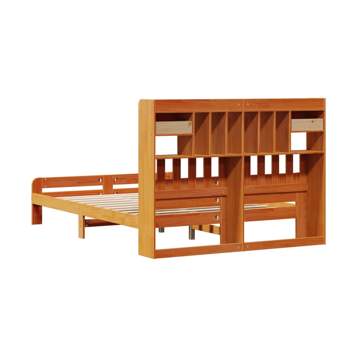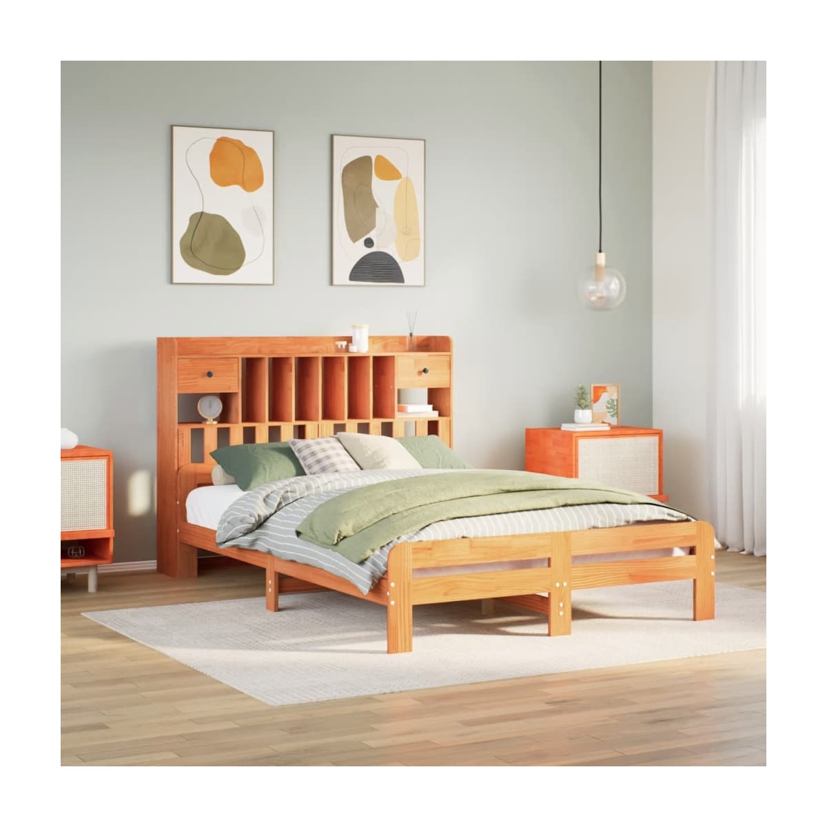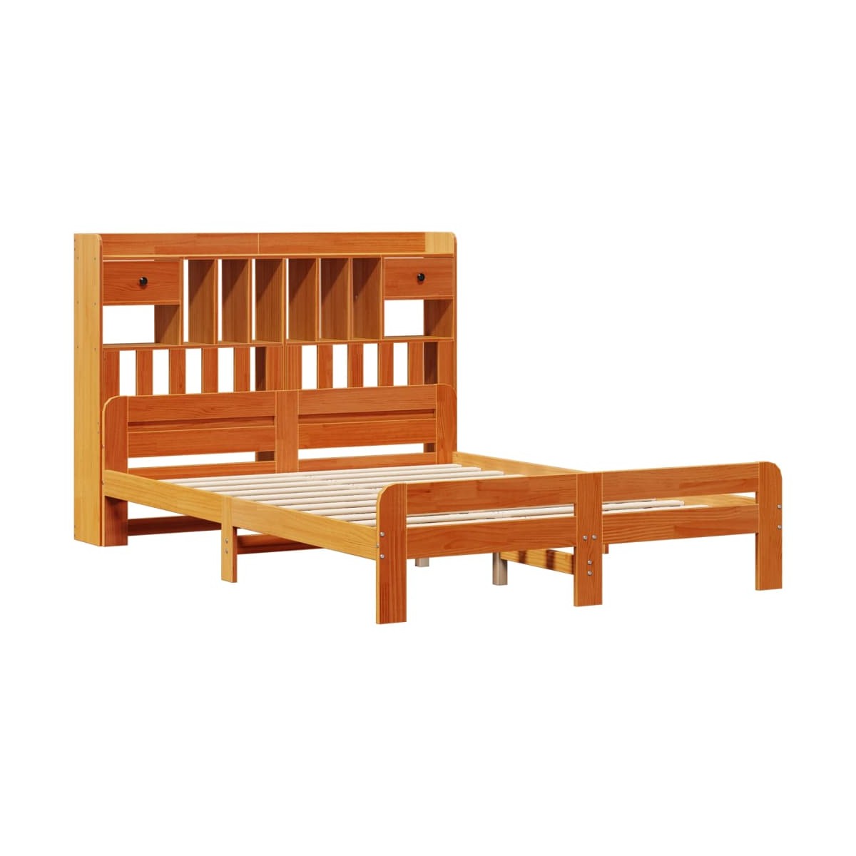 ¡Consigue una mejor noche de sueño reparador con esta cama con estantería! Es un aporte acogedor para cualquier dormitorio. Estructura estable y duradera: La madera de pino maciza es conocida por su resistencia y durabilidad. Sus vetas rectas y sus característicos nudos contribuyen a su encanto rústico.Somier de láminas para un soporte óptimo: La estructura de cama está equipada con un somier de láminas para el apoyo y la transpirabilidad del colchón.Amplio espacio de almacenamiento: El cabecero de estantería ofrece un amplio espacio de almacenamiento para mantener libros, artículos decorativos o pertenencias personales al alcance de la mano, lo que reduce el desorden en el dormitorio.Práctico pie de cama: El pie de cama no solo contribuye a la estabilidad general del marco de la cama, proporcionando un entorno seguro para dormir, sino que también asegura su colchón en su lugar y evita que las mantas, sábanas y otra ropa de cama se caigan del extremo de la cama, manteniendo una apariencia ordenada.Ahorro de espacio: Este cabecero es una opción de ahorro de espacio que puede sustituir la necesidad de una mesilla de noche, ayudando a maximizar el espacio de tu dormitorio, y haciéndolo ideal para espacios pequeños o limitados. Información útil:El colchón no está incluido con la cama. Disponemos de una variada selección de colchones. Puedes echar un vistazo a nuestra tienda para buscar el colchón correspondiente.