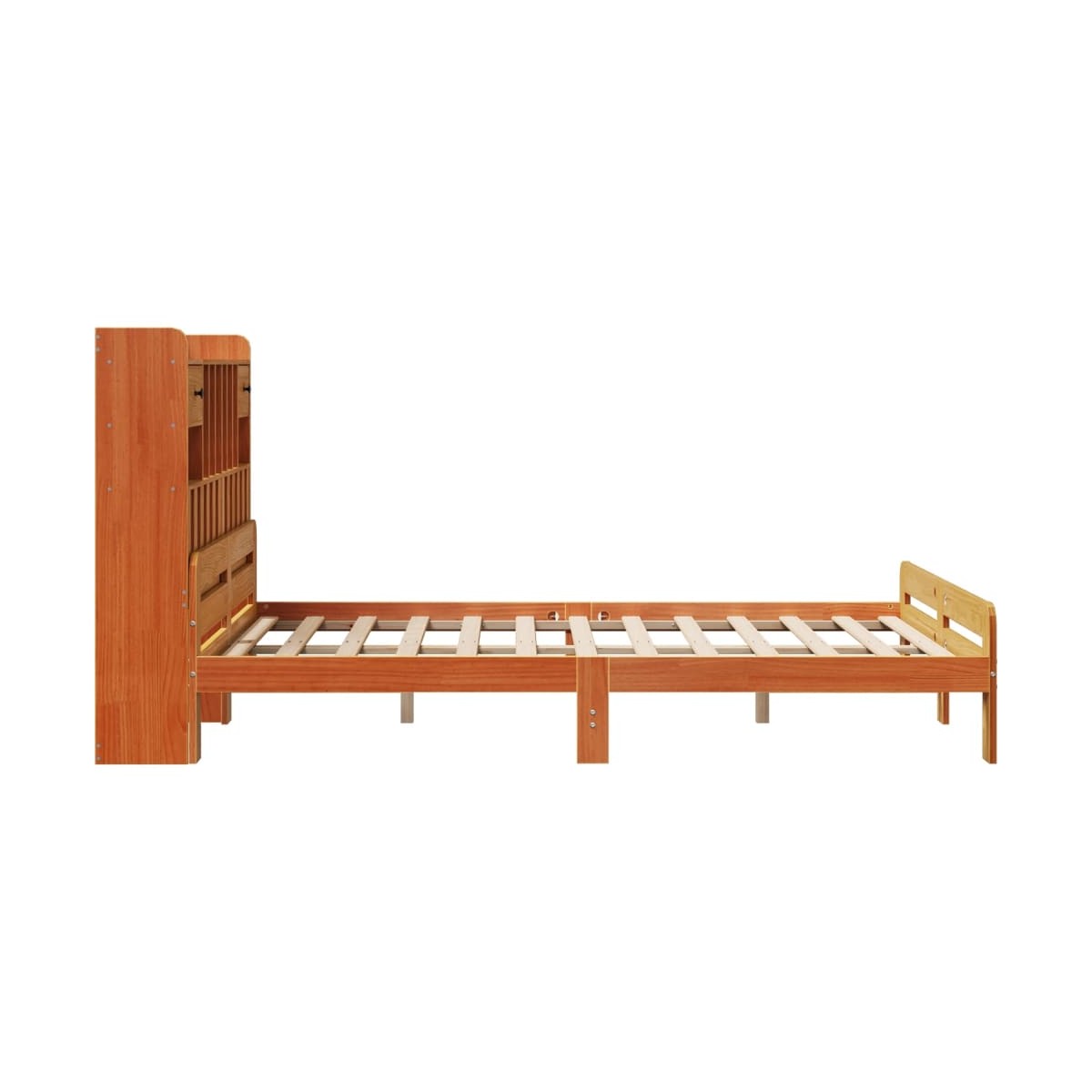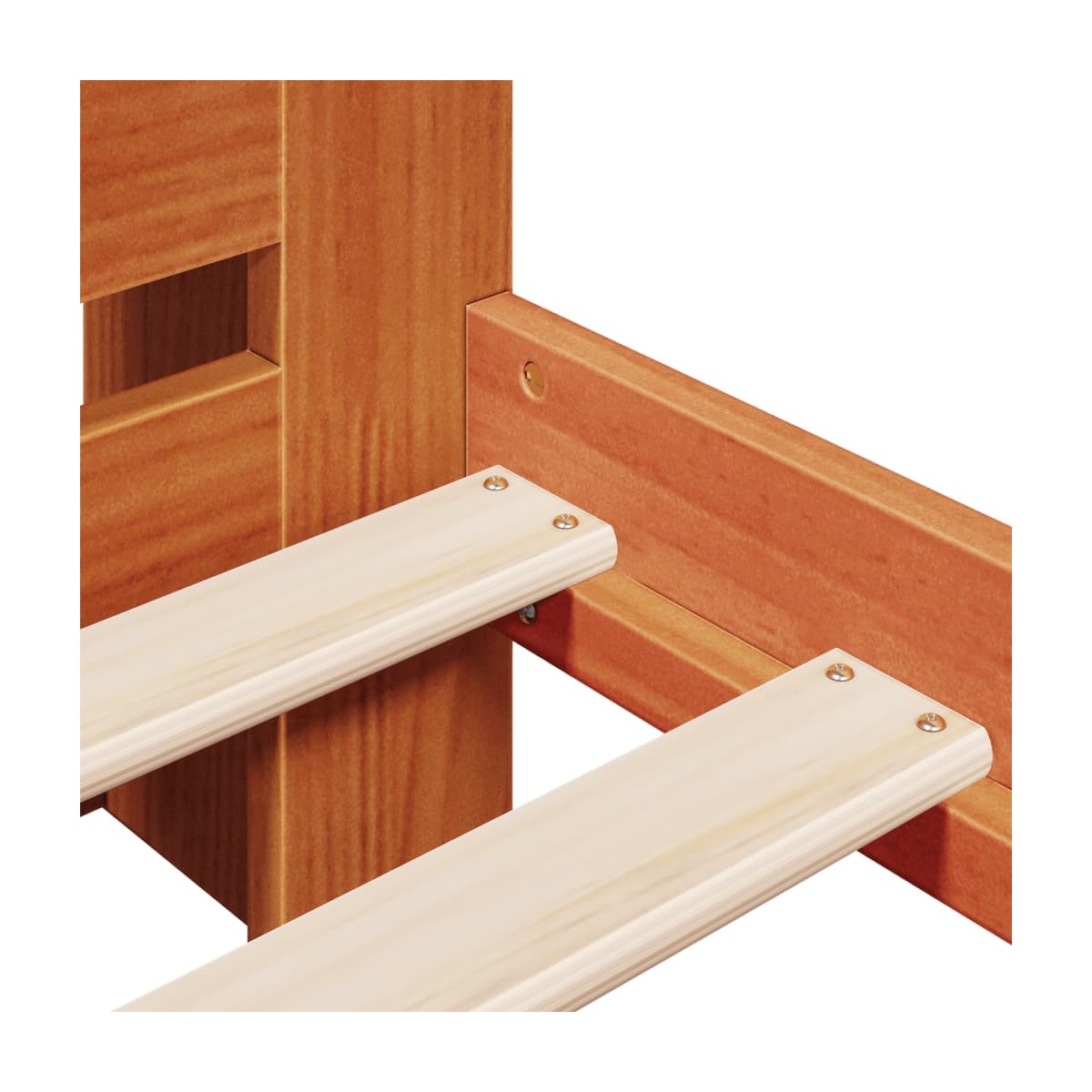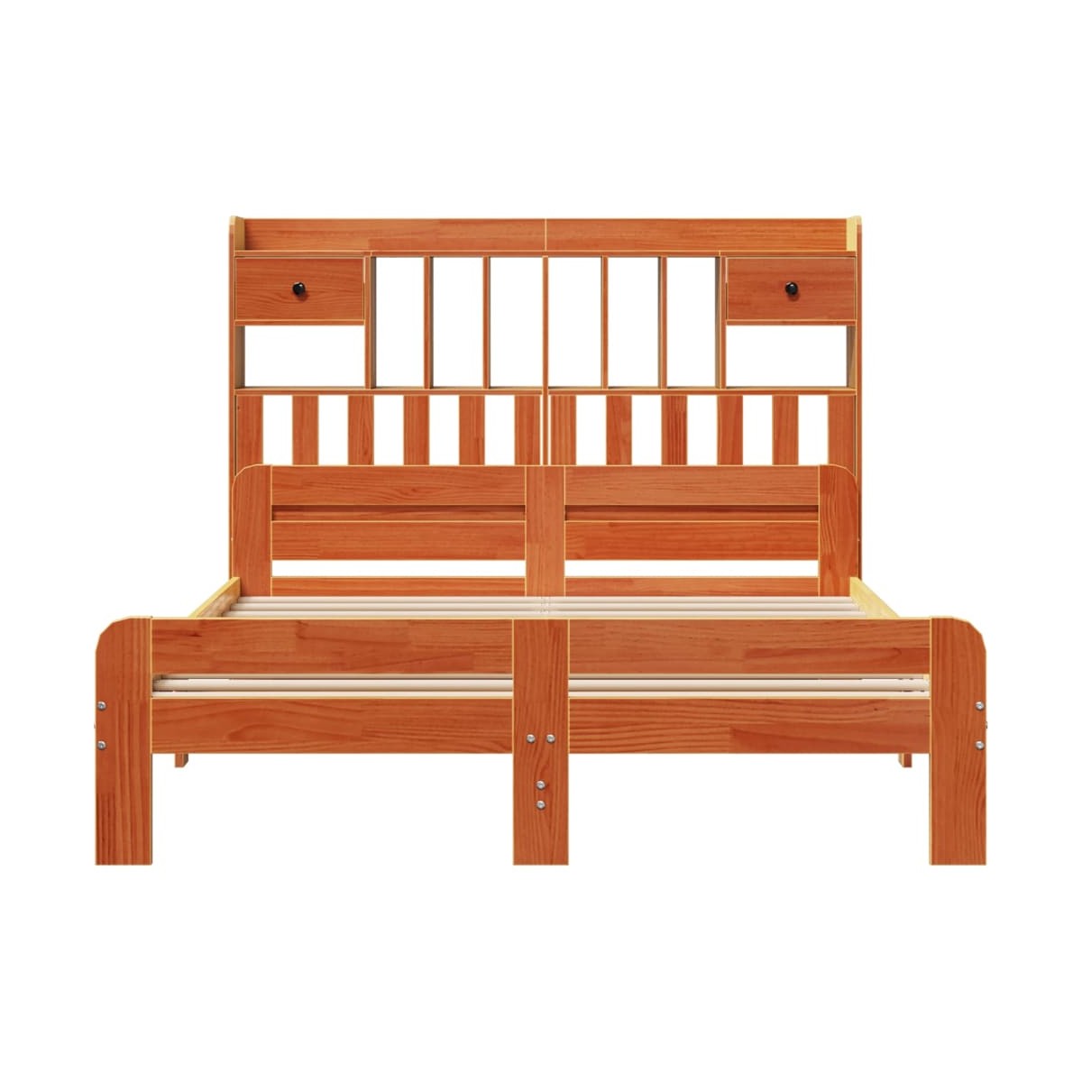 ¡Consigue una mejor noche de sueño reparador con esta cama con estantería! Es un aporte acogedor para cualquier dormitorio. Estructura estable y duradera: La madera de pino maciza es conocida por su resistencia y durabilidad. Sus vetas rectas y sus característicos nudos contribuyen a su encanto rústico.Somier de láminas para un soporte óptimo: La estructura de cama está equipada con un somier de láminas para el apoyo y la transpirabilidad del colchón.Amplio espacio de almacenamiento: El cabecero de estantería ofrece un amplio espacio de almacenamiento para mantener libros, artículos decorativos o pertenencias personales al alcance de la mano, lo que reduce el desorden en el dormitorio.Práctico pie de cama: El pie de cama no solo contribuye a la estabilidad general del marco de la cama, proporcionando un entorno seguro para dormir, sino que también asegura su colchón en su lugar y evita que las mantas, sábanas y otra ropa de cama se caigan del extremo de la cama, manteniendo una apariencia ordenada.Ahorro de espacio: Este cabecero es una opción de ahorro de espacio que puede sustituir la necesidad de una mesilla de noche, ayudando a maximizar el espacio de tu dormitorio, y haciéndolo ideal para espacios pequeños o limitados. Información útil:El colchón no está incluido con la cama. Disponemos de una variada selección de colchones. Puedes echar un vistazo a nuestra tienda para buscar el colchón correspondiente.