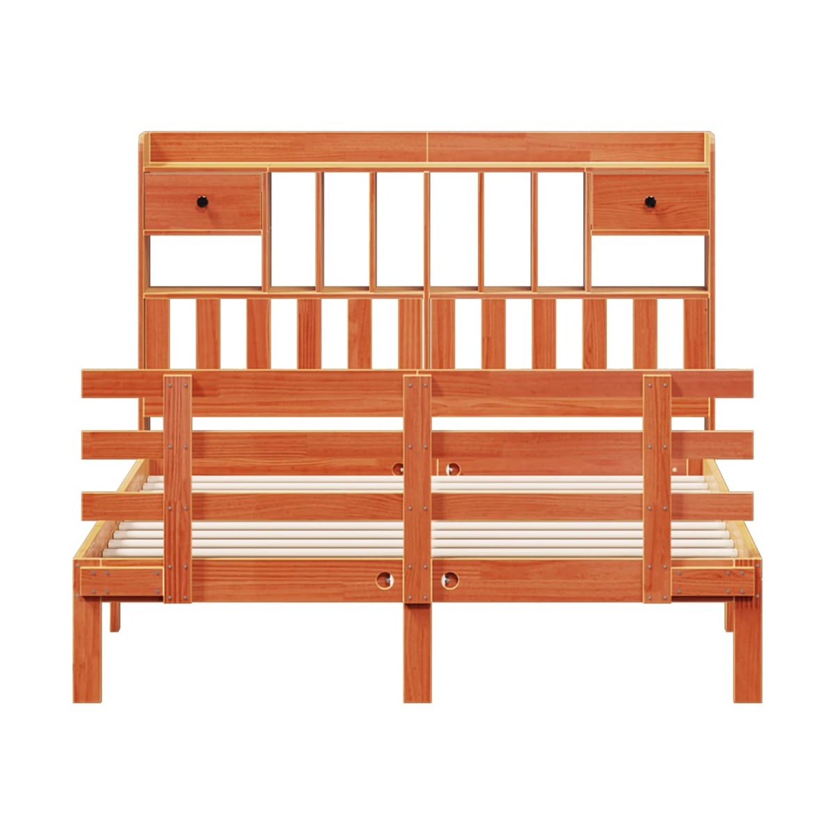¡Consigue una mejor noche de sueño reparador con esta cama con estantería! Es un aporte acogedor para cualquier dormitorio. Estructura estable y duradera: La madera de pino maciza es conocida por su resistencia y durabilidad. Sus vetas rectas y sus característicos nudos contribuyen a su encanto rústico. Somier de láminas para un soporte óptimo: La estructura de cama está equipada con un somier de láminas para el apoyo y la transpirabilidad del colchón. Amplio espacio de almacenamiento: El cabecero de estantería ofrece un amplio espacio de almacenamiento para mantener libros, artículos decorativos o pertenencias personales al alcance de la mano, lo que reduce el desorden en el dormitorio. Práctico pie de cama: El pie de cama no solo contribuye a la estabilidad general del marco de la cama, proporcionando un entorno seguro para dormir, sino que también asegura su colchón en su lugar y evita que las mantas, sábanas y otra ropa de cama se caigan del extremo de la cama, manteniendo una apariencia ordenada. Ahorro de espacio: Este cabecero es una opción de ahorro de espacio que puede sustituir la necesidad de una mesilla de noche, ayudando a maximizar el espacio de tu dormitorio, y haciéndolo ideal para espacios pequeños o limitados. Información útil:El colchón no está incluido con la cama. Disponemos de una variada selección de colchones. Puedes echar un vistazo a nuestra tienda para buscar el colchón correspondiente.