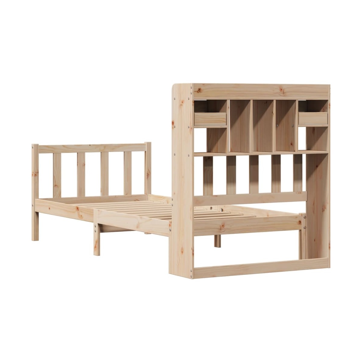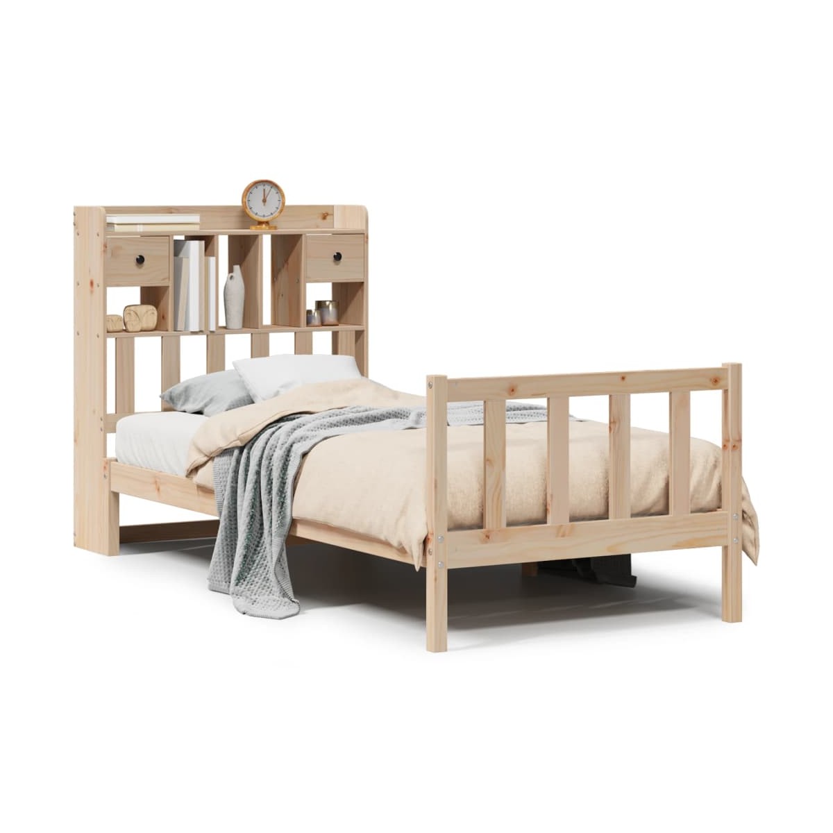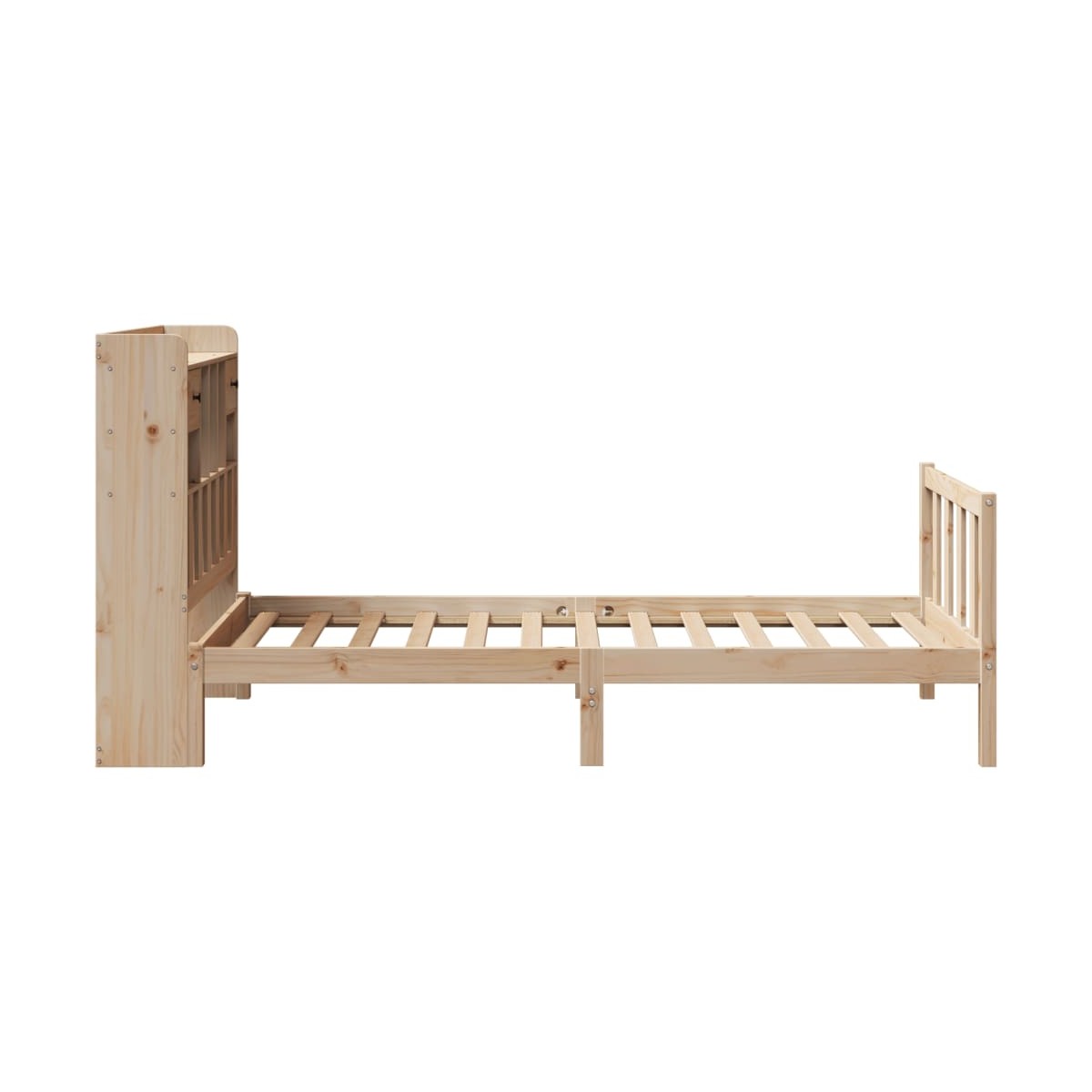 ¡Consigue una mejor noche de sueño reparador con esta cama con estantería! Es un aporte acogedor para cualquier dormitorio. Estructura estable y duradera: La madera de pino maciza es conocida por su resistencia y durabilidad. Sus vetas rectas y sus característicos nudos contribuyen a su encanto rústico.Somier de láminas para un soporte óptimo: La estructura de cama está equipada con un somier de láminas para el apoyo y la transpirabilidad del colchón.Amplio espacio de almacenamiento: El cabecero de estantería ofrece un amplio espacio de almacenamiento para mantener libros, artículos decorativos o pertenencias personales al alcance de la mano, lo que reduce el desorden en el dormitorio.Práctico pie de cama: El pie de cama no solo contribuye a la estabilidad general del marco de la cama, proporcionando un entorno seguro para dormir, sino que también asegura su colchón en su lugar y evita que las mantas, sábanas y otra ropa de cama se caigan del extremo de la cama, manteniendo una apariencia ordenada.Ahorro de espacio: Este cabecero es una opción de ahorro de espacio que puede sustituir la necesidad de una mesilla de noche, ayudando a maximizar el espacio de tu dormitorio, y haciéndolo ideal para espacios pequeños o limitados. Información útil:El colchón no está incluido con la cama. Disponemos de una variada selección de colchones. Puedes echar un vistazo a nuestra tienda para buscar el colchón correspondiente.