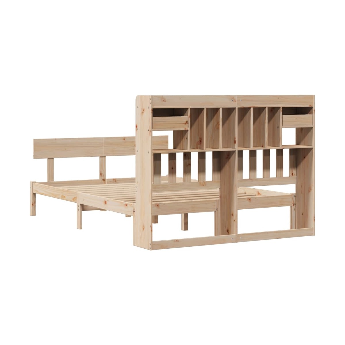 ¡Consigue una mejor noche de sueño reparador con esta cama con estantería! Es un aporte acogedor para cualquier dormitorio. Estructura estable y duradera: La madera de pino maciza es conocida por su resistencia y durabilidad. Sus vetas rectas y sus característicos nudos contribuyen a su encanto rústico.Somier de láminas para un soporte óptimo: La estructura de cama está equipada con un somier de láminas para el apoyo y la transpirabilidad del colchón.Amplio espacio de almacenamiento: El cabecero de estantería ofrece un amplio espacio de almacenamiento para mantener libros, artículos decorativos o pertenencias personales al alcance de la mano, lo que reduce el desorden en el dormitorio.Práctico pie de cama: El pie de cama no solo contribuye a la estabilidad general del marco de la cama, proporcionando un entorno seguro para dormir, sino que también asegura su colchón en su lugar y evita que las mantas, sábanas y otra ropa de cama se caigan del extremo de la cama, manteniendo una apariencia ordenada.Ahorro de espacio: Este cabecero es una opción de ahorro de espacio que puede sustituir la necesidad de una mesilla de noche, ayudando a maximizar el espacio de tu dormitorio, y haciéndolo ideal para espacios pequeños o limitados. Información útil:El colchón no está incluido con la cama. Disponemos de una variada selección de colchones. Puedes echar un vistazo a nuestra tienda para buscar el colchón correspondiente.